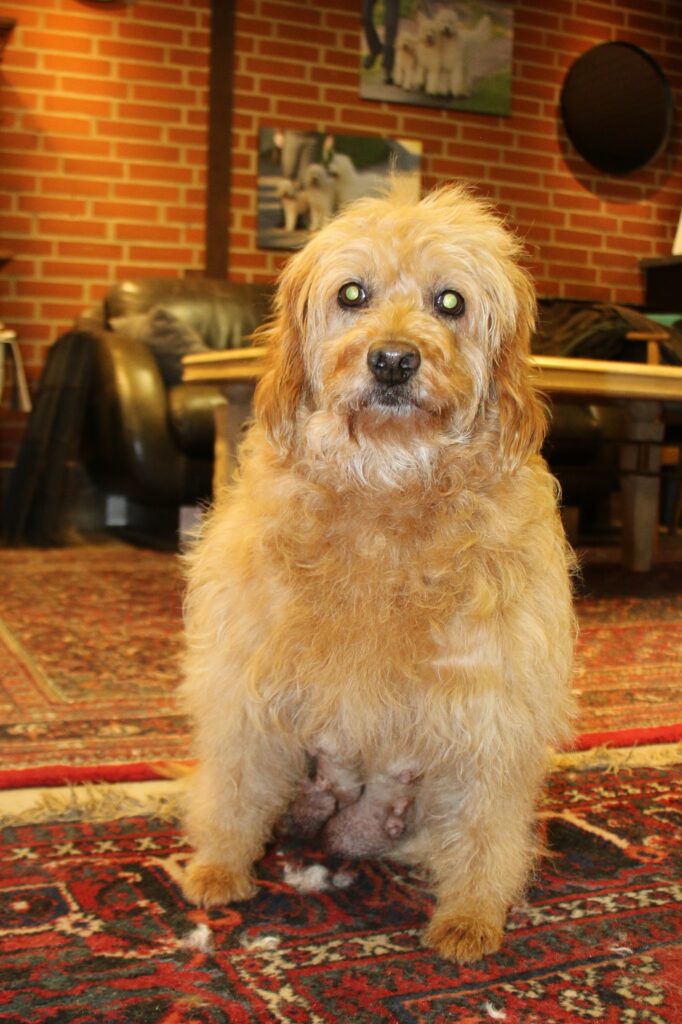 Her er billeder af mor Paris ….hun er jo en trimmehund og så hendes pels er anderledes end den pels hendes hvalpe får, for de får klippepels.