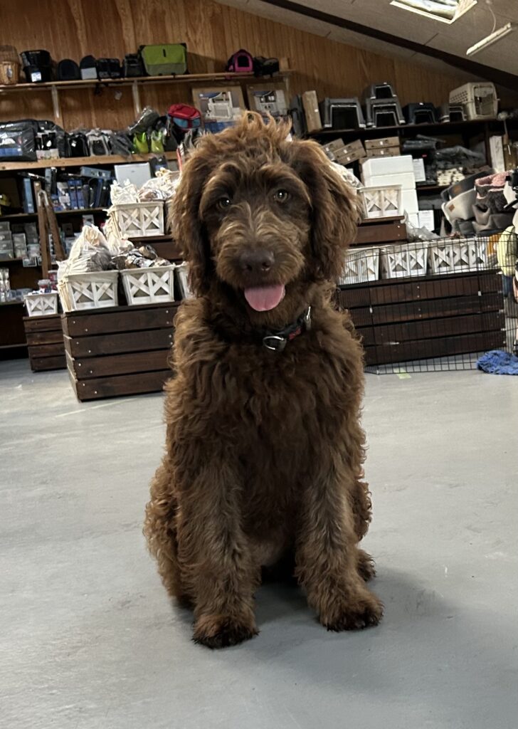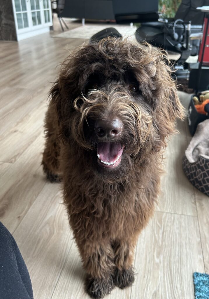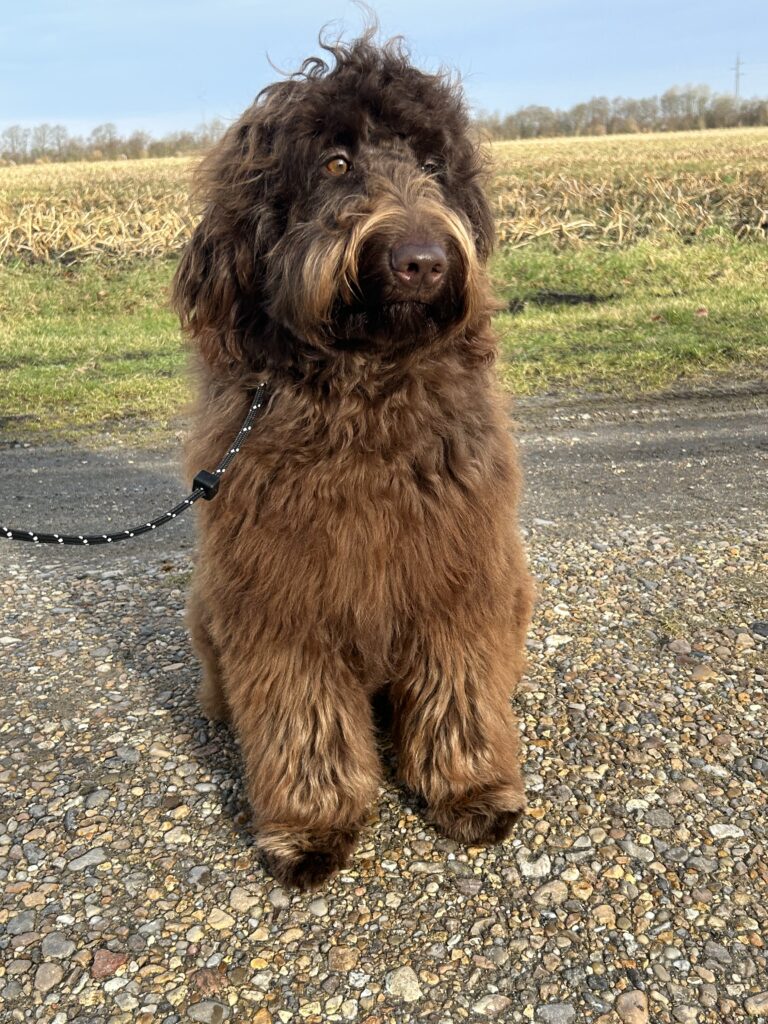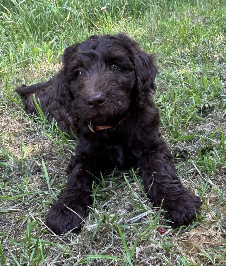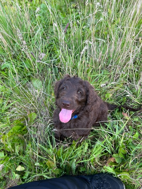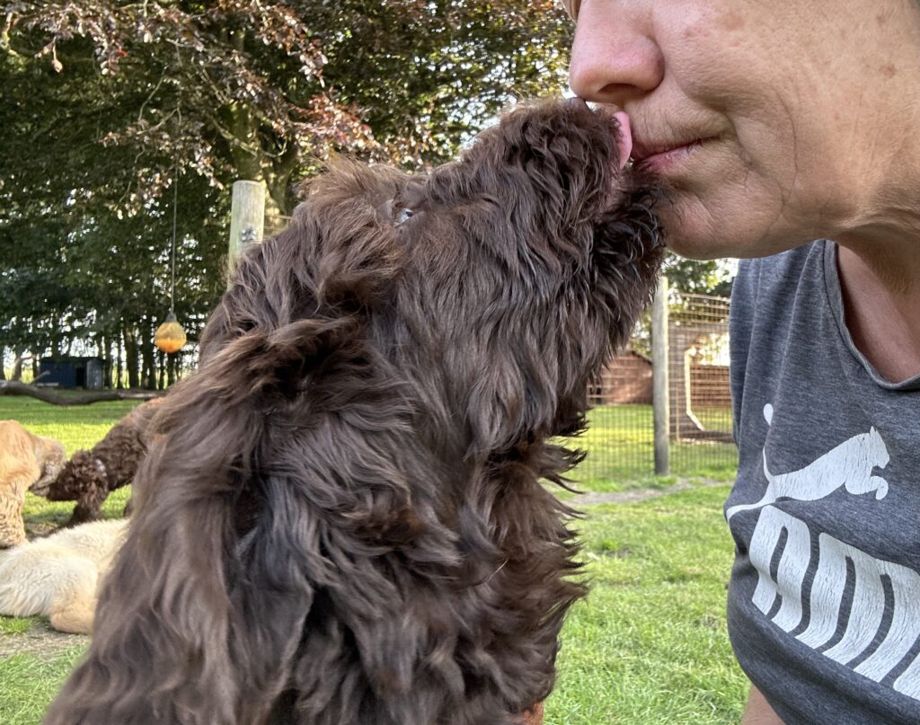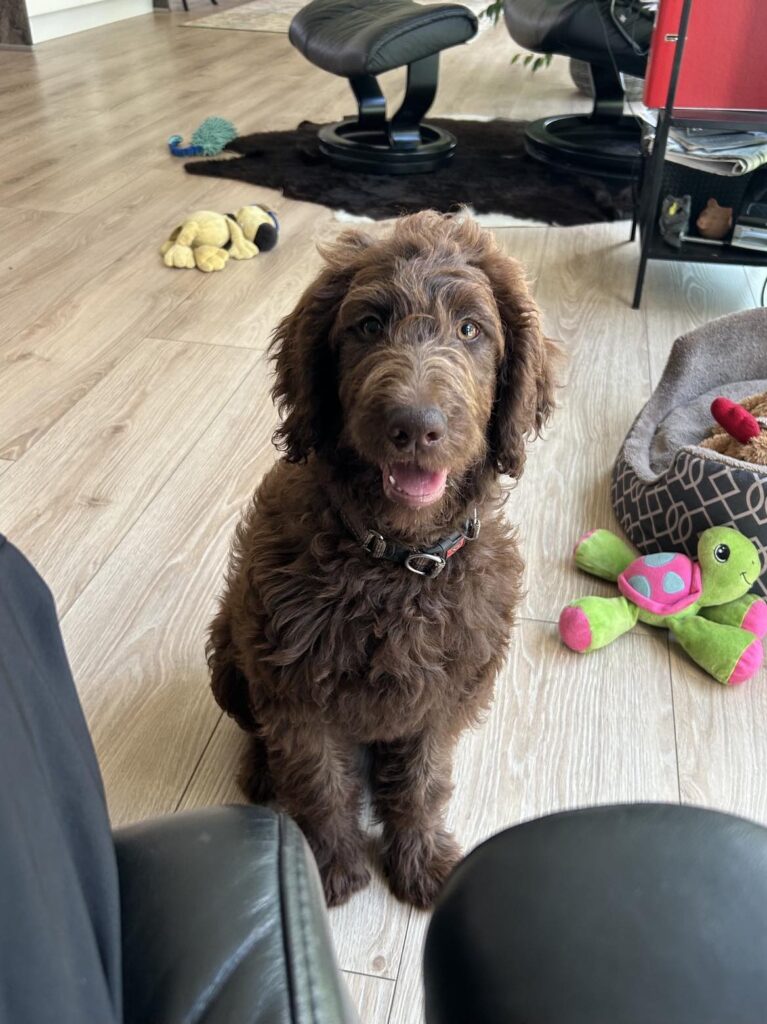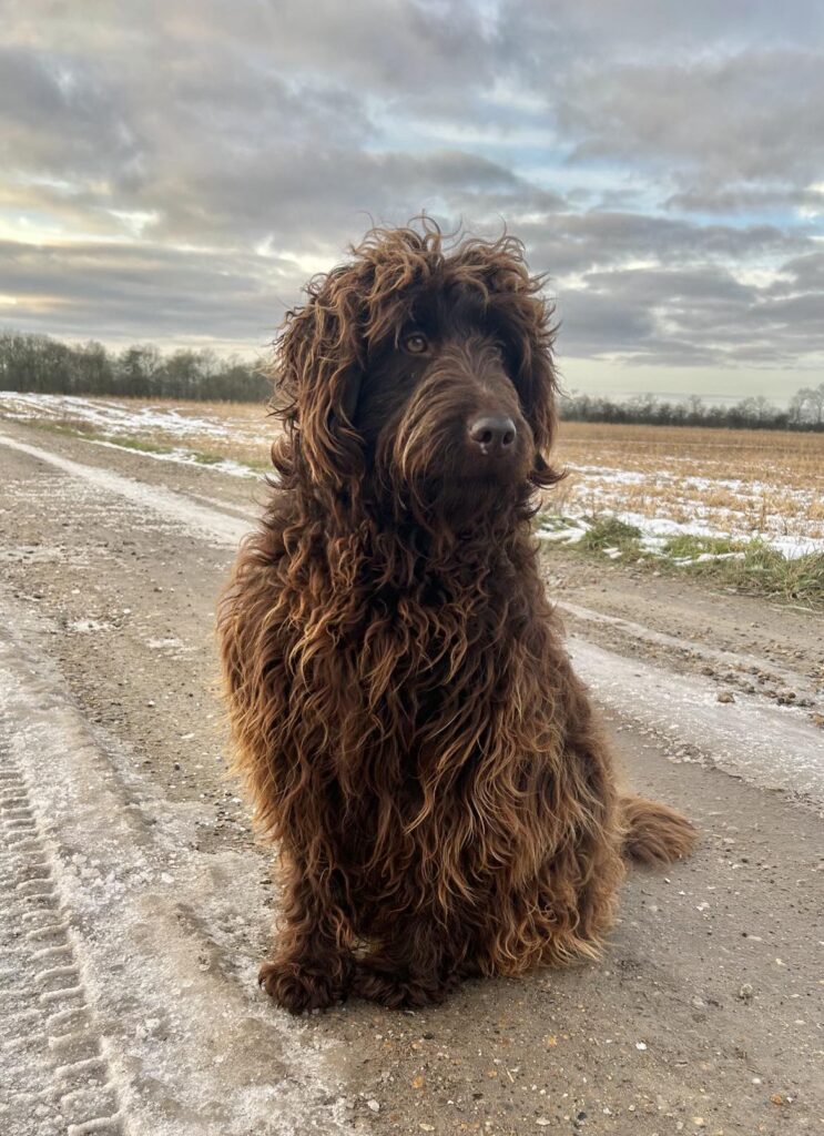 Vores store brune Flatcoated Retriever Queen og vores store brune Puddel Hefaruck har fået 4 hvalpe.