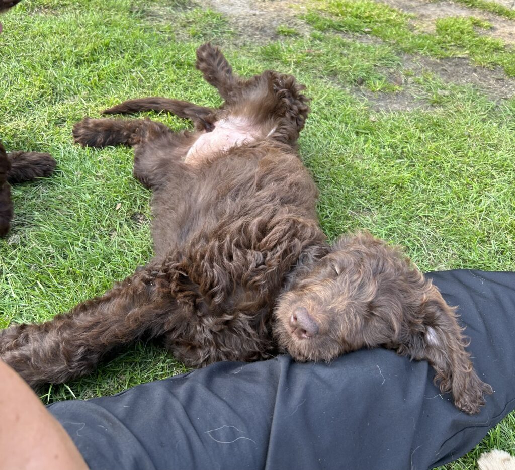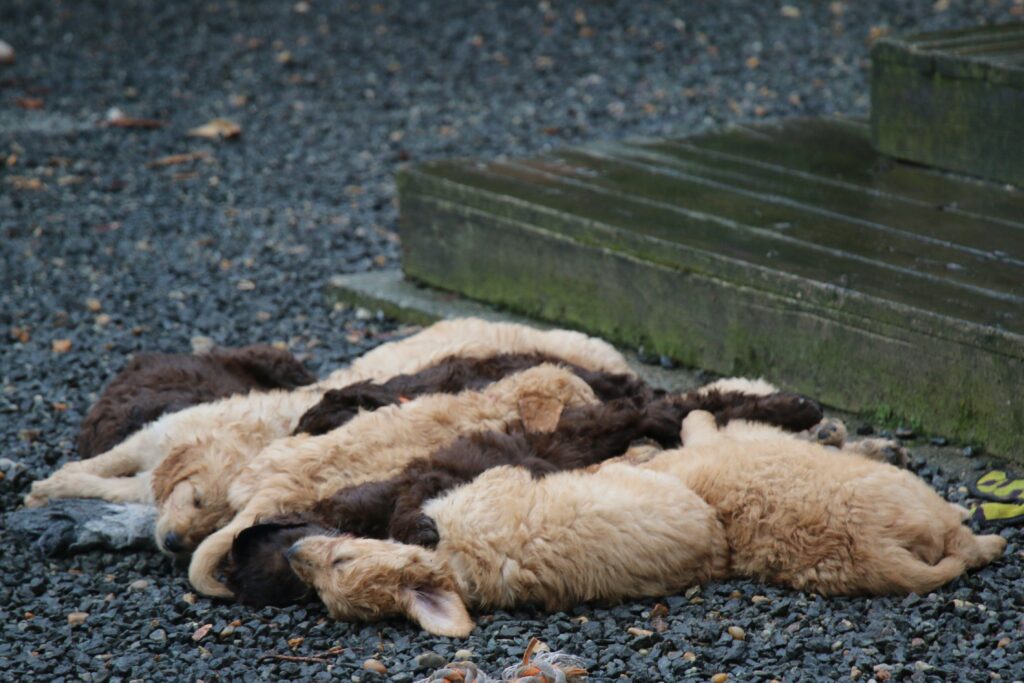 Alle hvalpen er gode til bare at slappe af mellem dagens mere aktive aktiviteter, så de virker dejlig rolige når man ikke laver noget med dem.