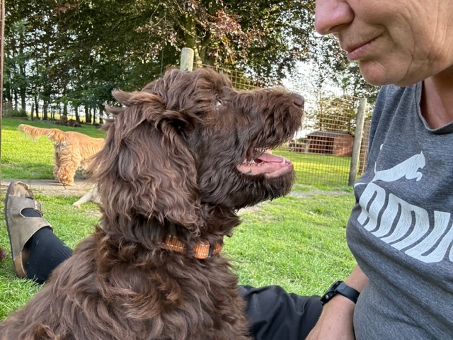 Hun er rigtig go til at gå pænt i snor. Hun kan også gå uden snor og kommer når man kalder. hun hopper aldrig op og hun er naturligvis renlig mv. Så en dejlig velopdragen og nem hund.