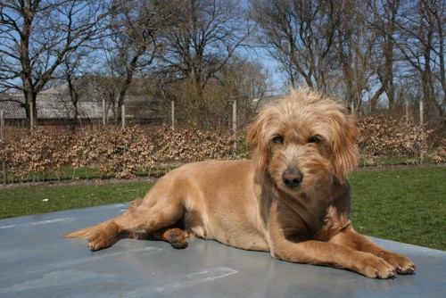 Her er det vores egen brune mini/mellem Labradoodle RIGA. Riga er lidt over 3 mdr på dette billede.