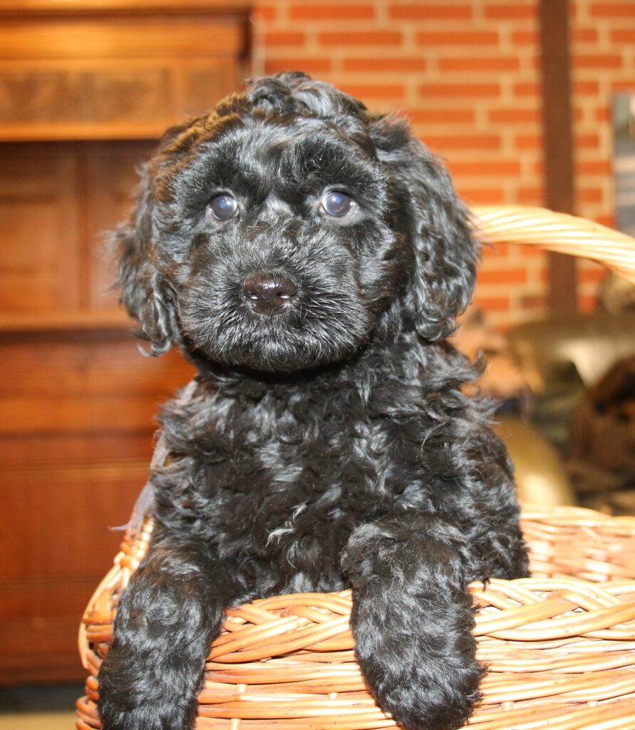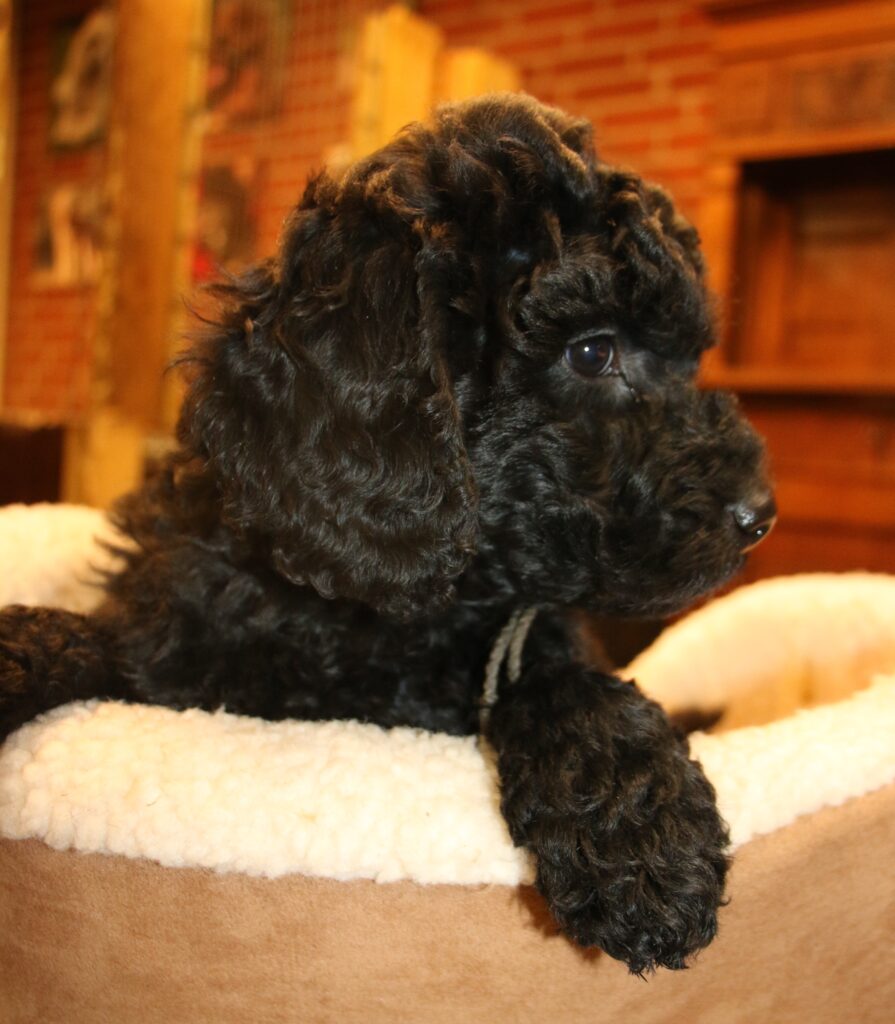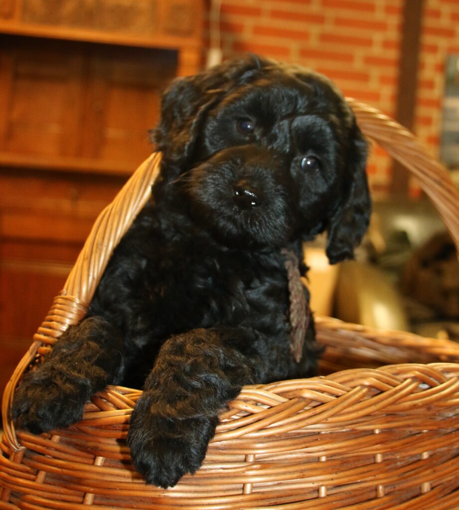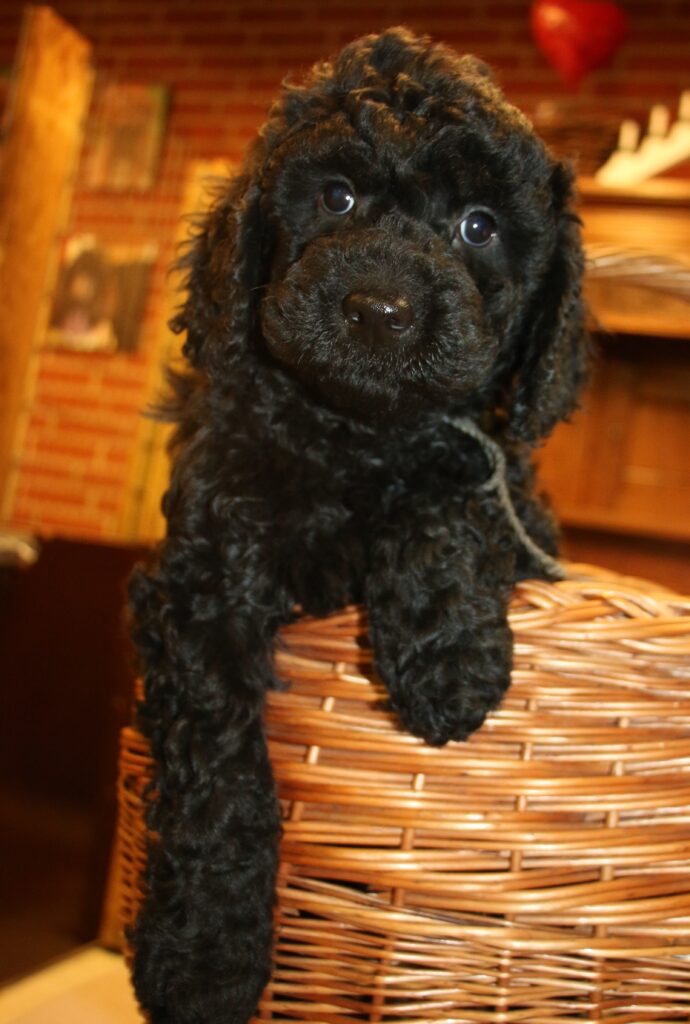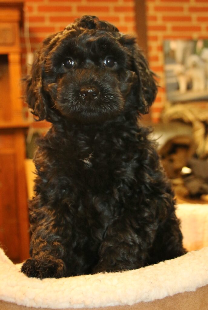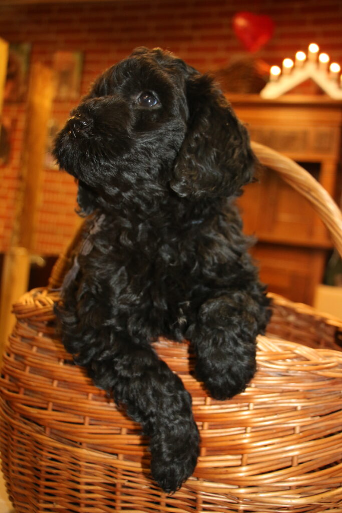 Disse hvalpe vil blive sorte eller lys/gyldne og de får klippepels.