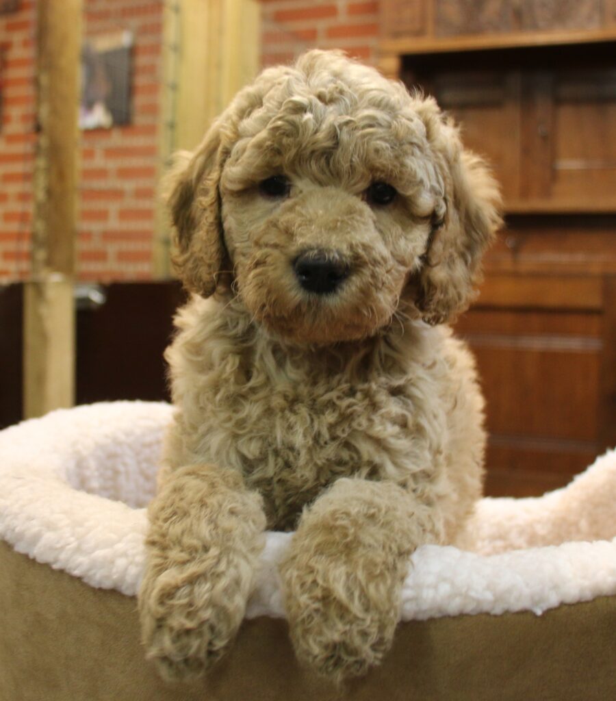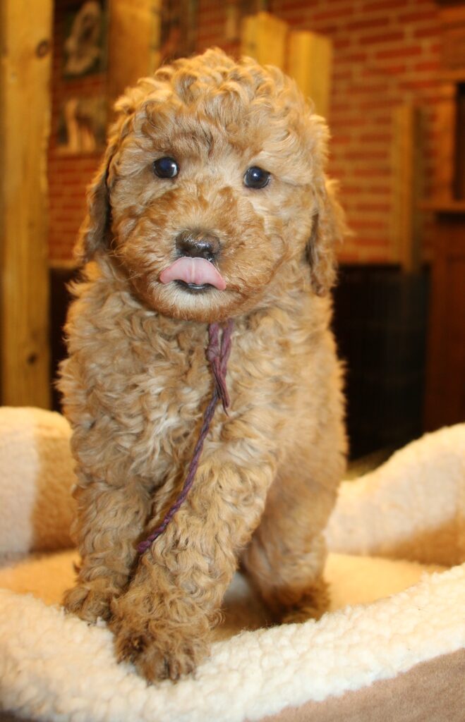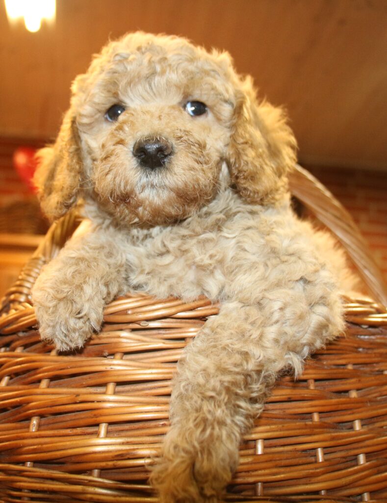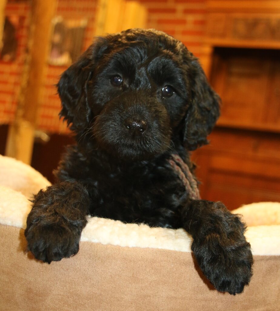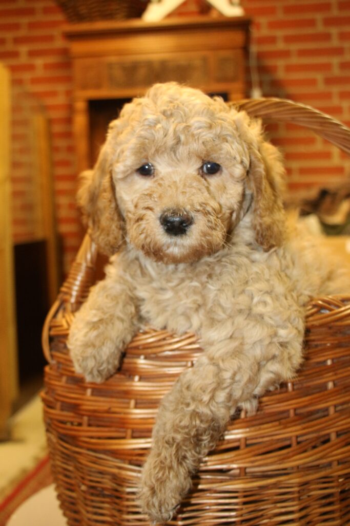 Disse hvalpe vil blive sorte eller lys/gyldne og de får klippepels.