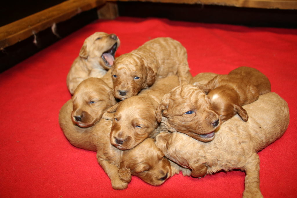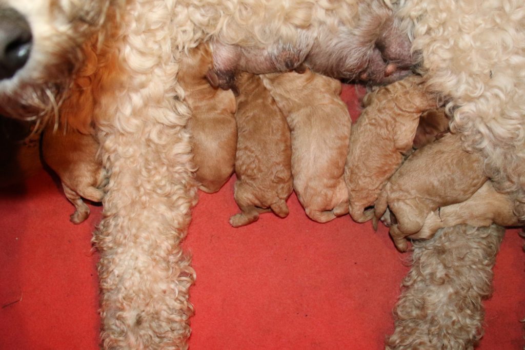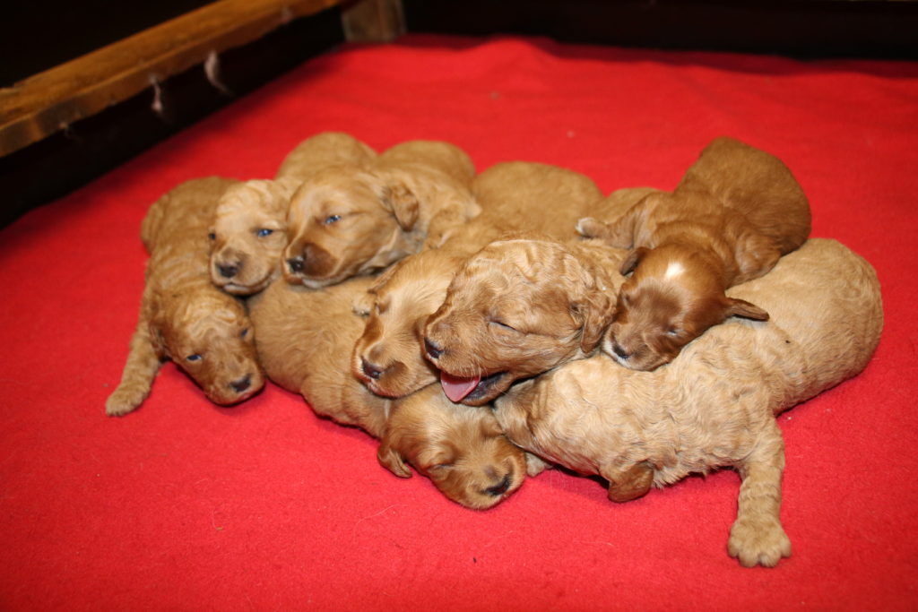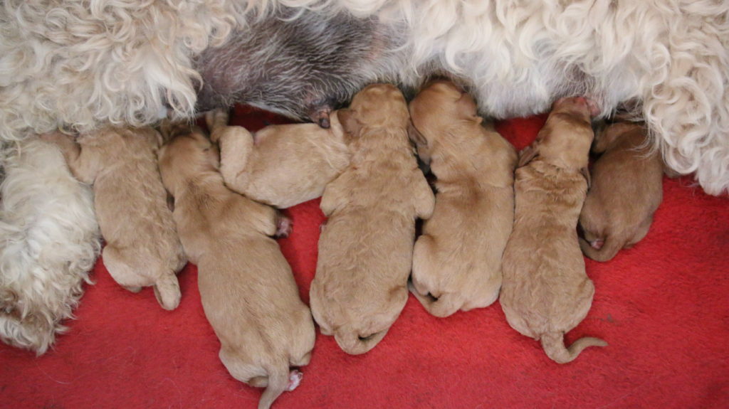 Cherry født den 14.5.2018, 9 lyse/gyldne hvalpe. 4 hanner og 5 tæver.