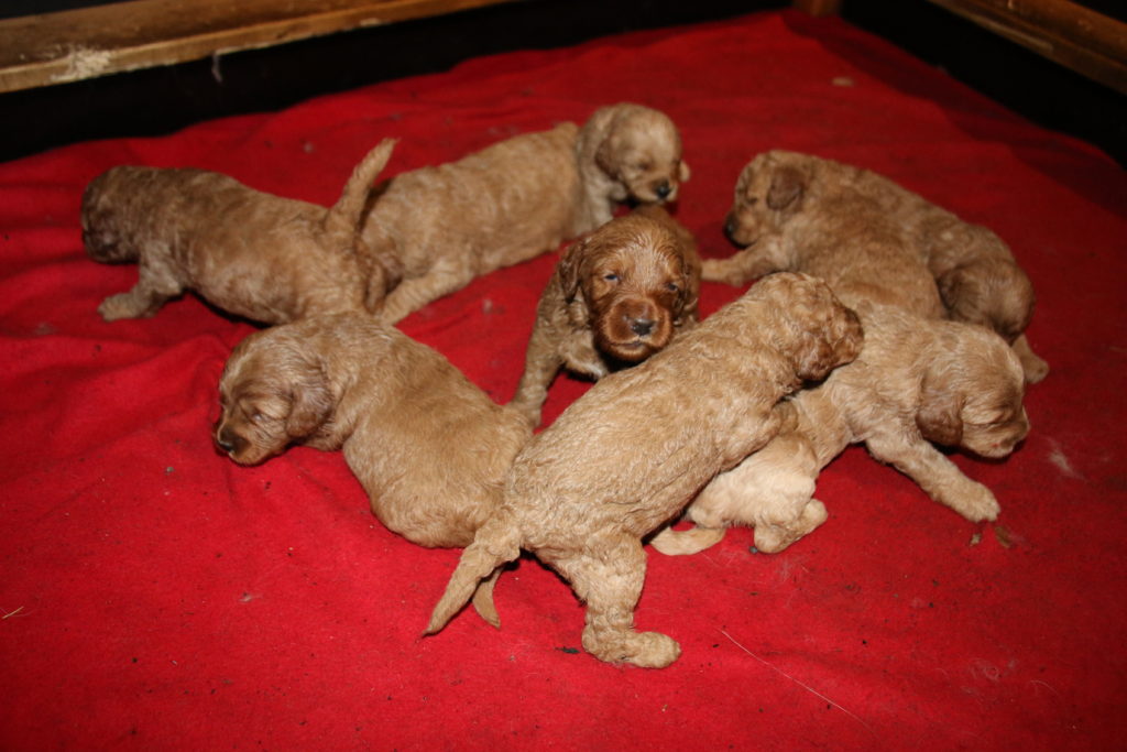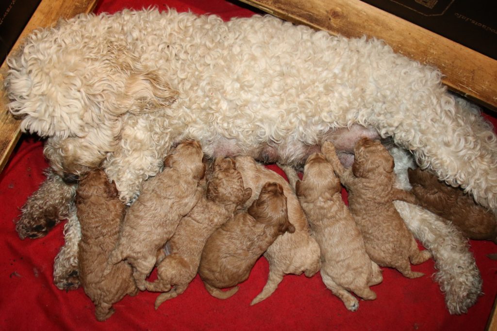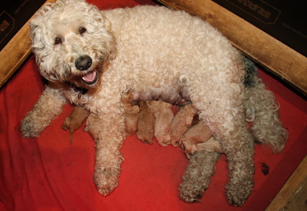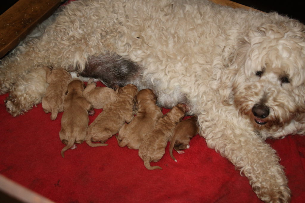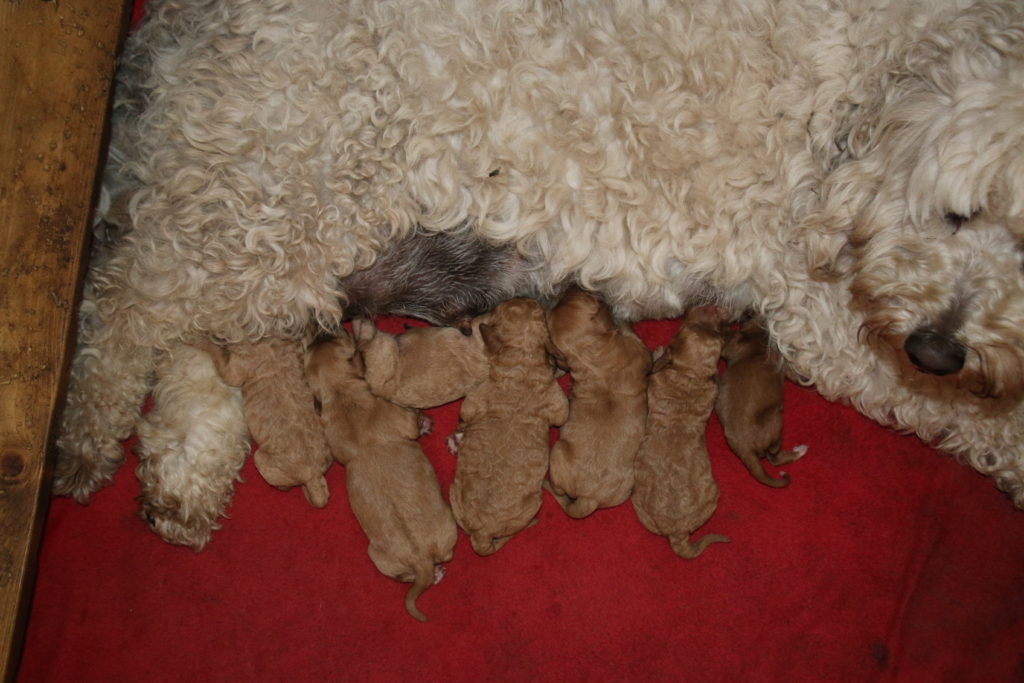 Vores mellem Labradoodle F1B Cherry har fået hvalpe med vores lille Cavapoo F1 Soul igen.