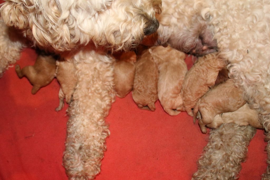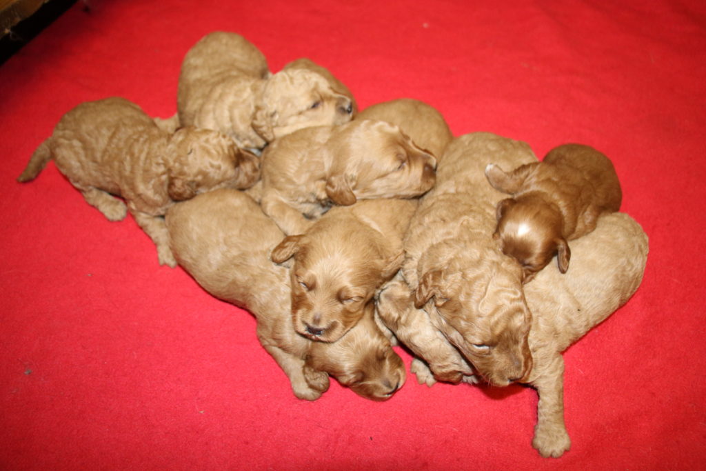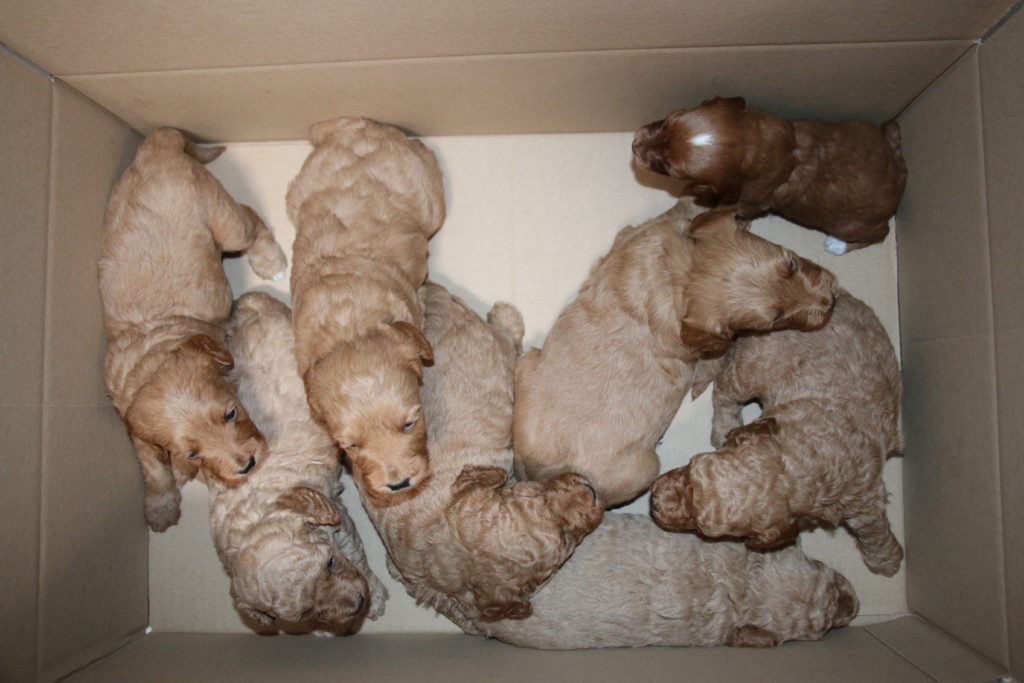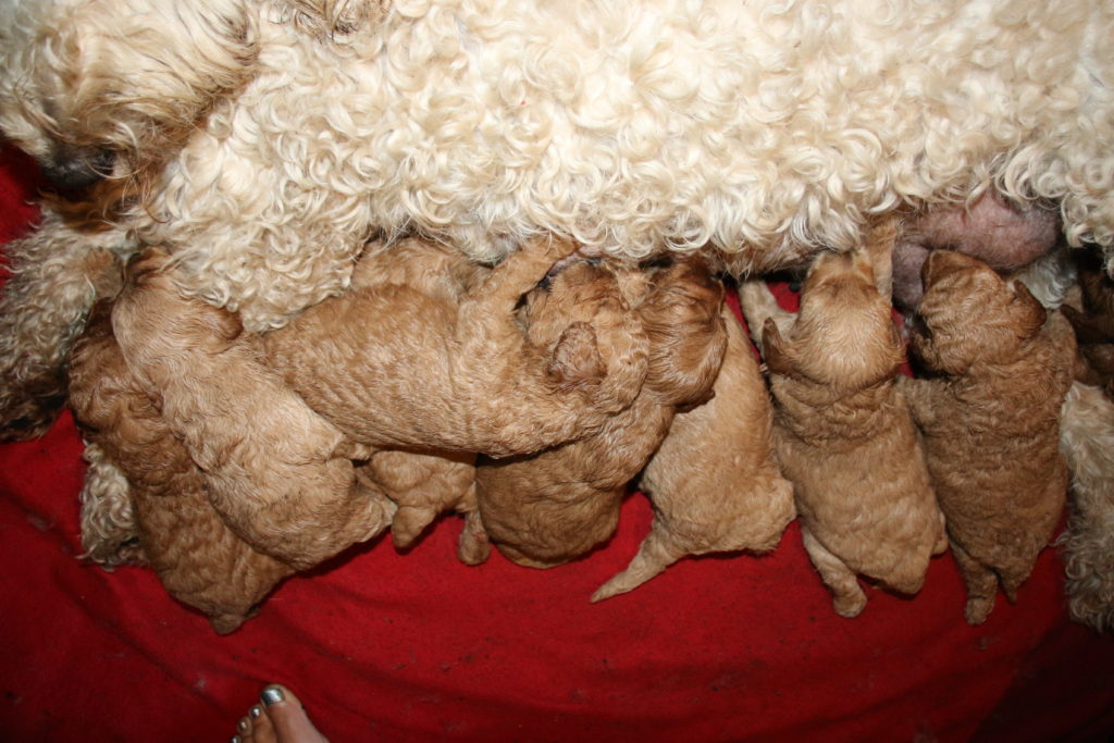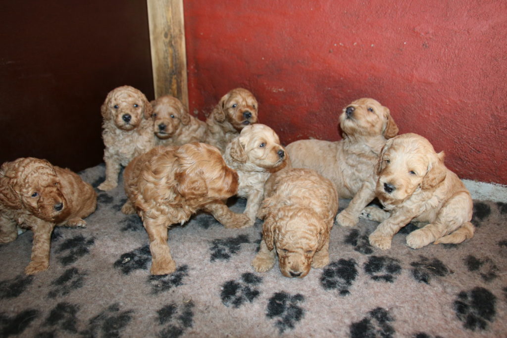 Vores mellem Labradoodle F1B Cherry har fået hvalpe med vores lille Cavapoo F1 Soul igen.