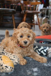 Og vores mellem Goldendoodle F1 Momo har også fået hvalpe med lille Cavapoo F1 Soul igen.