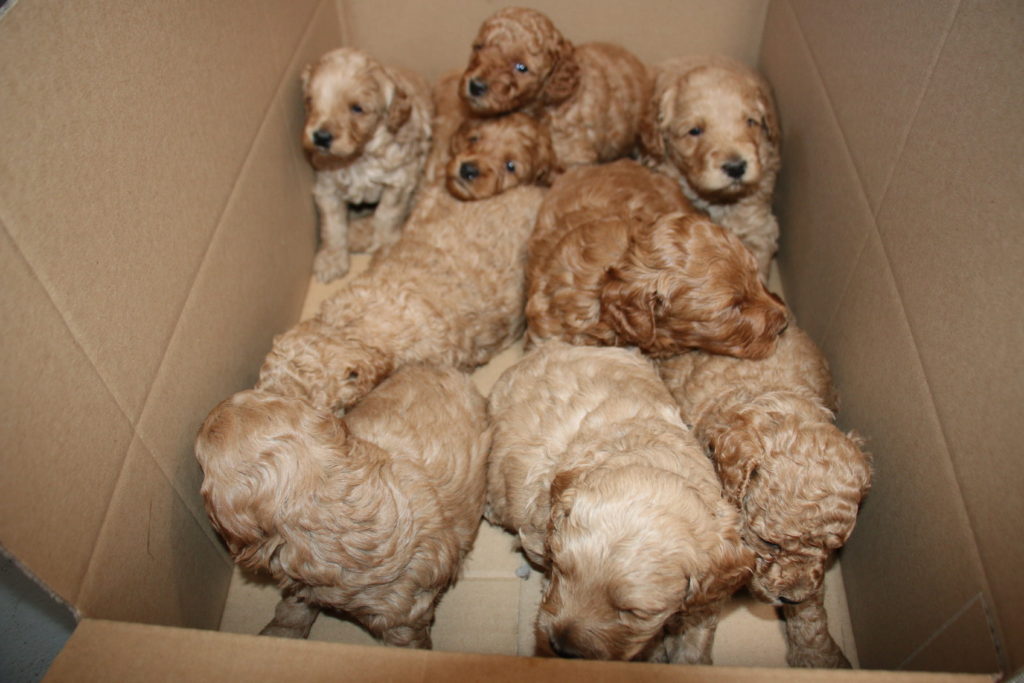 Momo fødte den 17.5.201, 8 lyse/gyldne hvalpe, 3 hanner og 5 tæver.