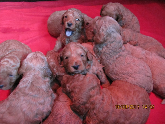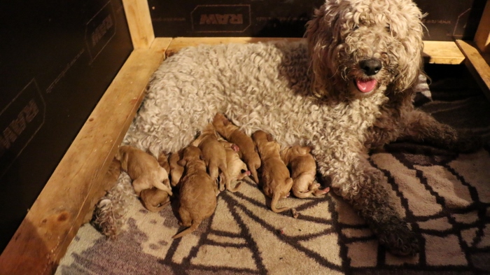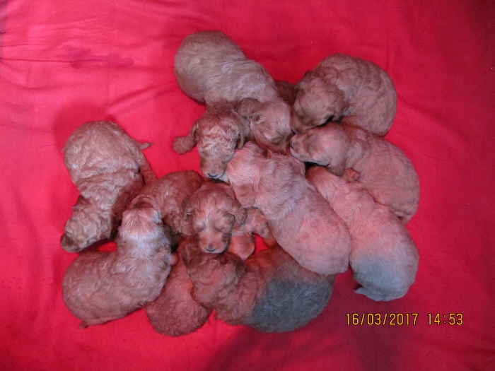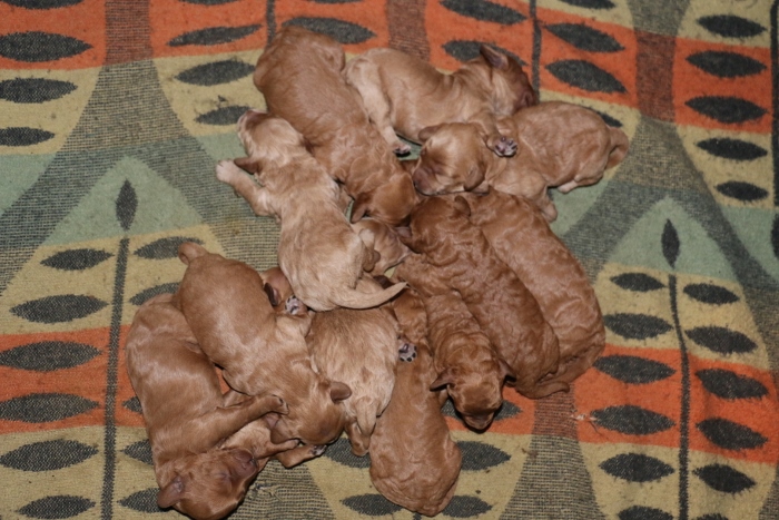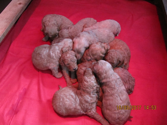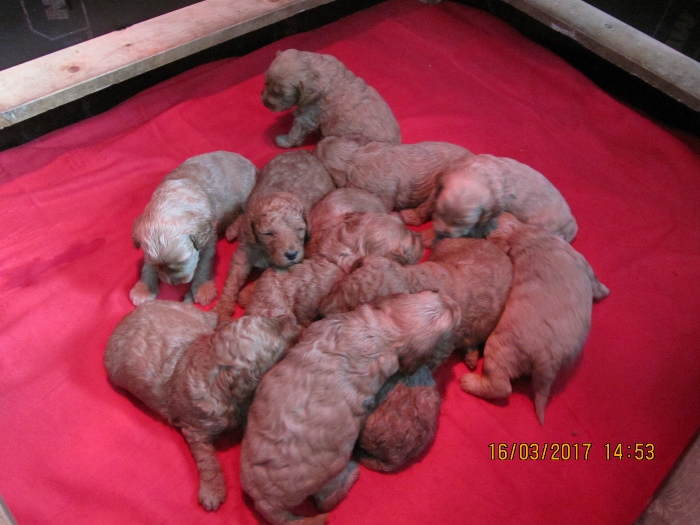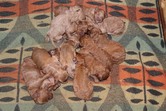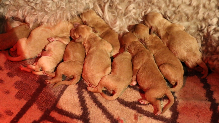 Så kom der en stor flok hvalpe fra Cherry. Hun fik problemfri 13 hvalpe, en var dog alt for lille og døde omgående, 12 lever i bedste velgående.