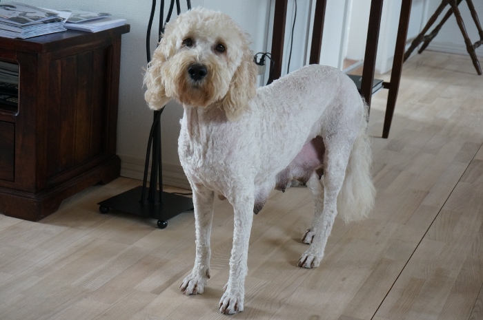 ![]() Mor Cherry (Ca 50 cm og 18 kg)Mor Cherry, har nu fået fjernet pelsen med maskineklip og er skaldet på kroppen. Hun syntes selv det er ret fedt, for hun lider hun ikke længere af varme 🙂 ![]() |