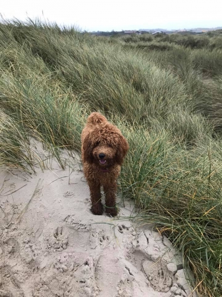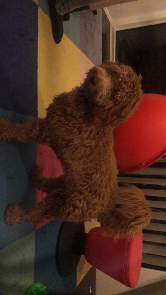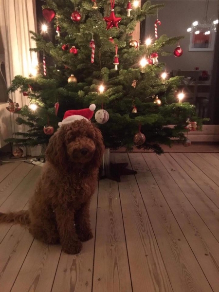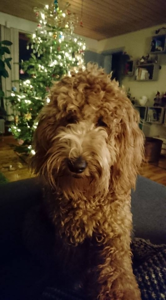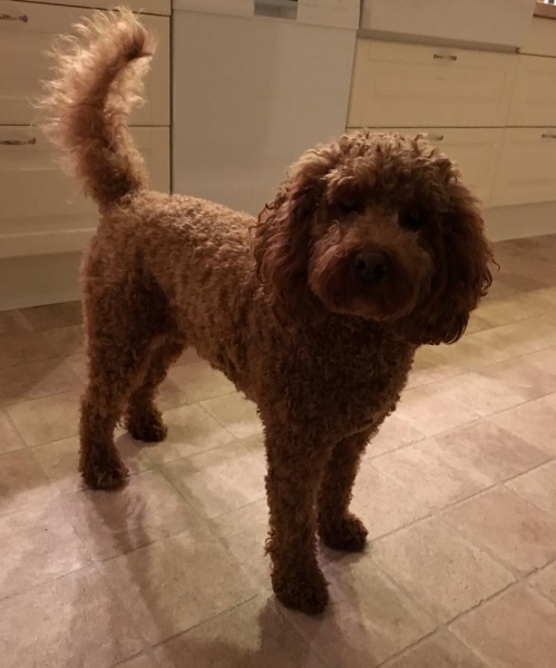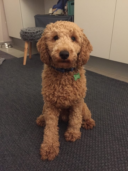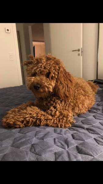 Her under er det den lille lyse tæve, solgt. Hun er meget kærlig og vil helst bo på skødet af os. K: 1, T: 4, S/B: 5. Hun bliver nok ca 7-9 kg og 36-39 cm.