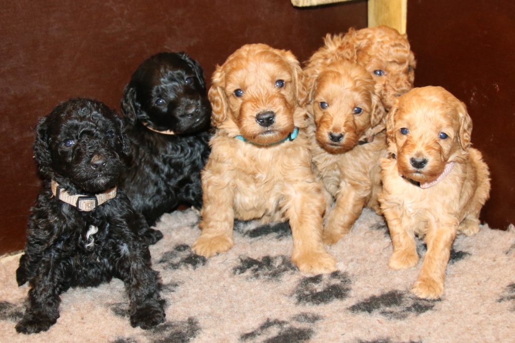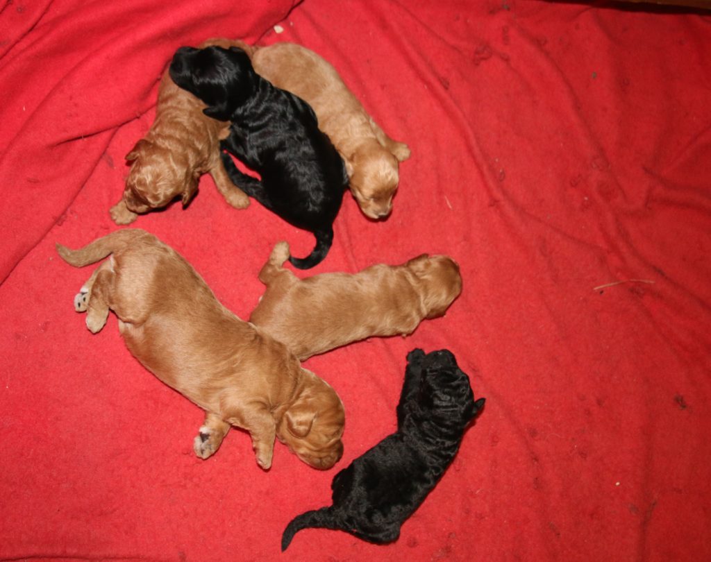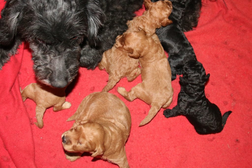 Goldendoodle F1 Choice har fået hvalpe med Cavapoo F1 Soul for første gang.