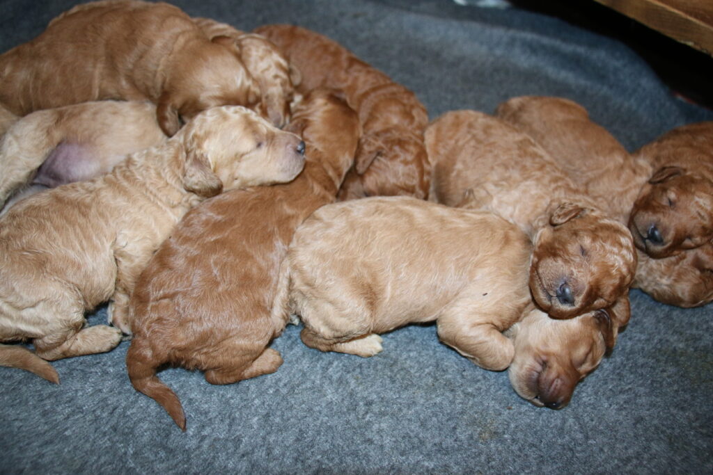 Vores mellem Goldendoodle F1 Coco har fået hvalpe med vores lille Cavapoo F1 Soul.