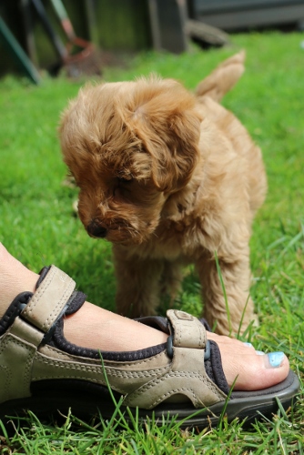Disse Doodledoodles indeholder altså 50% puddel, 25% Welsh Springer Spaniel og 25% Labrador. (Som en F1)