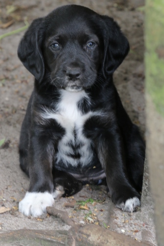 Der er født 5 hvalpe, 3 tæver og 2 hanner. De er mest sort og nogle har hvid på bryst eller poter og en harlekin (sort/hvid)