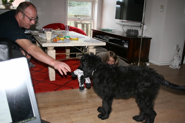 Hvalpene er 8 uger den 6 Juli 2014 og vi udlevere hvalpene igen “den 2.1.2015” Mødetid kl 11.00 + 6 timers undervisning. Hvalpen er klare til at være alene fra ca 3 dage efter ankomst i hjemmet, vi informere jer om hvordan “alene-træningen” forgår når vi underviser jer i forbindelse med afhentningen af hvalpene. Vi underviser i div. vedr hvalpen og dens opdragelse/opvækst. Vi har ikke mindre børn (min alder 10 år) med ved afhentninger pga undervisningens varighed, men vi forventer at både mor og far er med. Husk at få læst det tilsendte matriale inden afhentning (Mail). Afhentning/undervisning på andre dage en de tilbudte/planlagte, koster kr. 1.500,- extra.