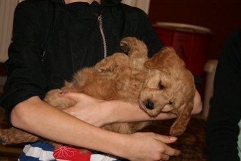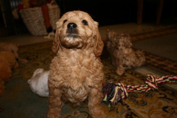 Se billeder og videoer på siden ” Sally og Gayas mini/mellem Labradoodler….”….