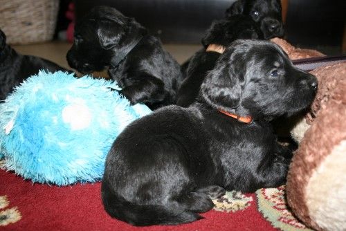 Hvalpene trive og bliver mere og mere mobile. De er stadig nogle ret rolige hvalpe, men der skal nok komme gang i dem.