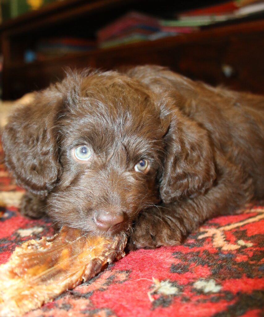 Vores mini/mellem Labradoodle F1 Bali har fået hvalpe med vores lille Toy Puddel Peanut