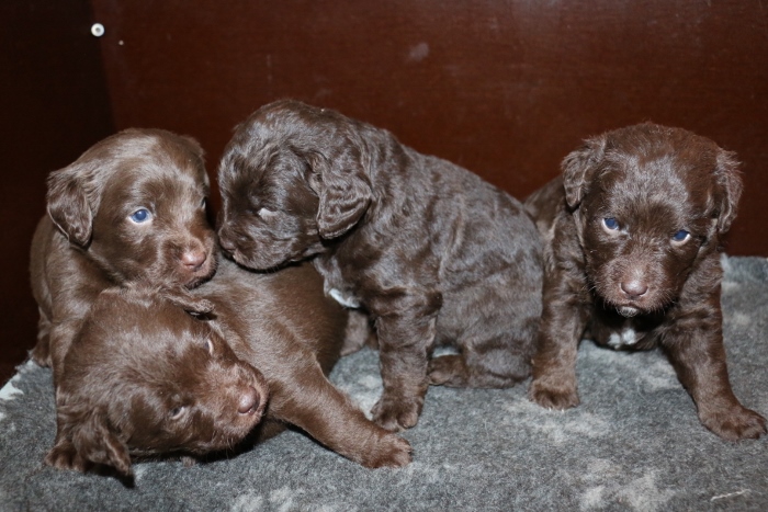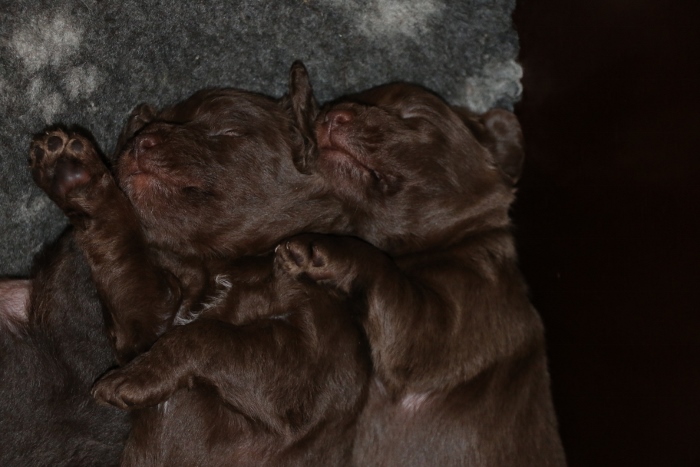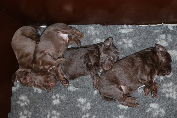 Carla fik 4 brune hvalpe, 3 brune tæver og en brun han.