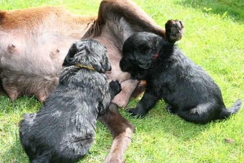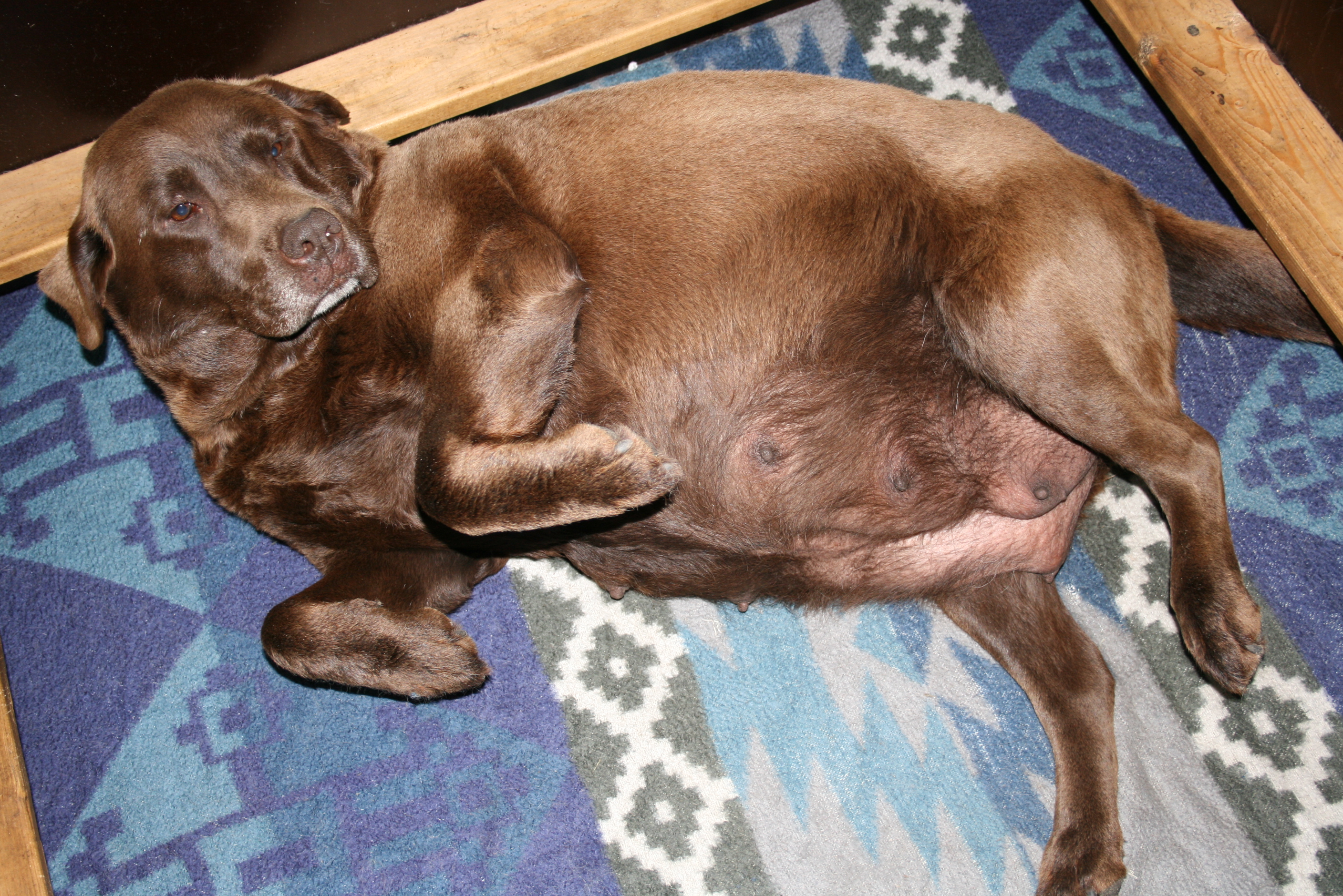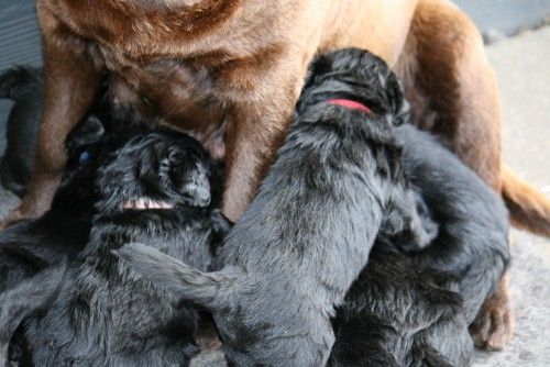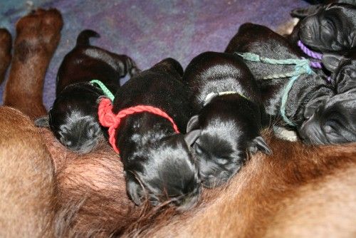 Vi har i samråd med vores dyrlæge valgt at Emma skal havde kejsersnit. De sidste 2 fødsler er alligevel endt i kejsersnit efter mange timers fødsel. Det er fordi hun holder på dem lidt for længe og så bliver de så store inden i hende at hun ikke kan presse dem ud og pga at fødslerne trækker ud tidsmæssigt løber hun også tør for kræfter. Så i sidste kuld var der 10 hvalpe i hende, men kun 6 overlevede den hårde fødsel, se mere om det tidligere kulds hårde fødsel under menu “Tidligere kuld“.