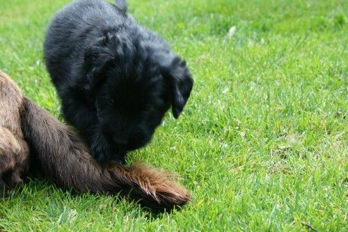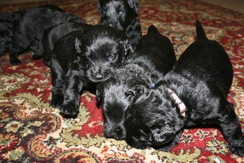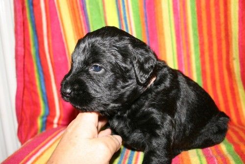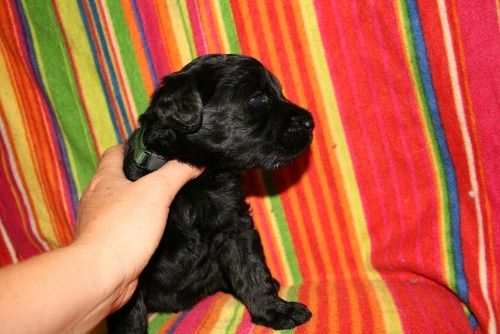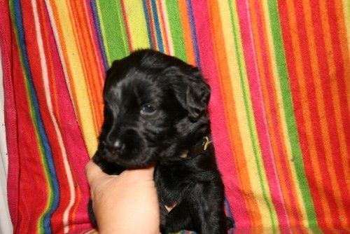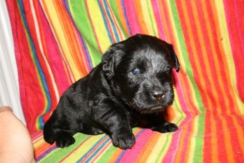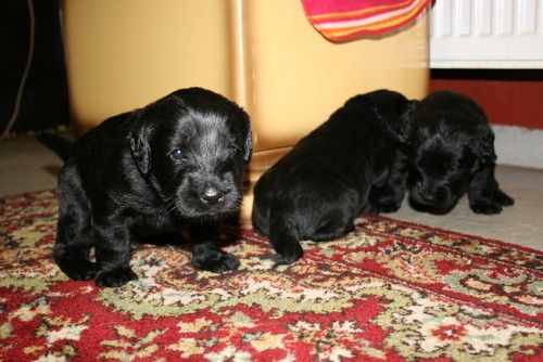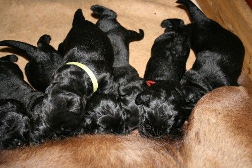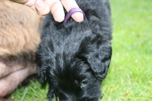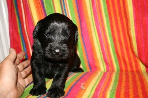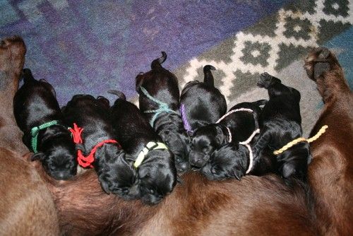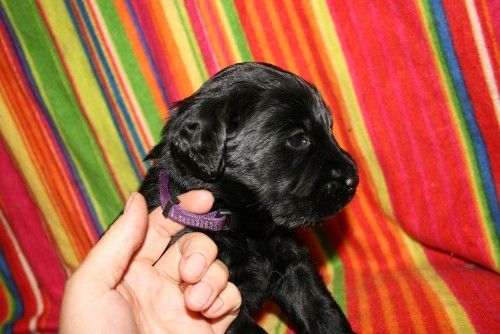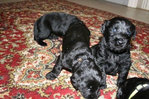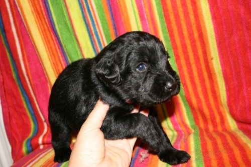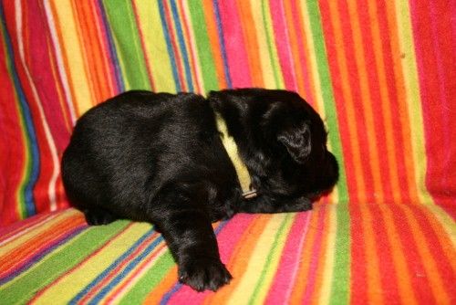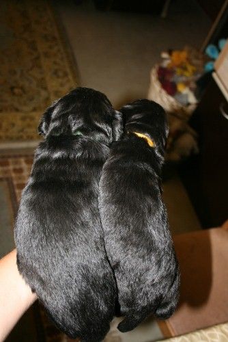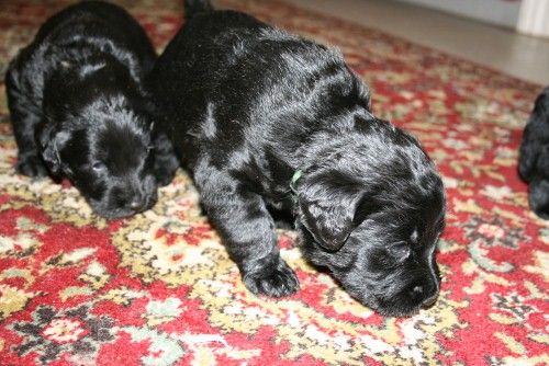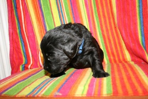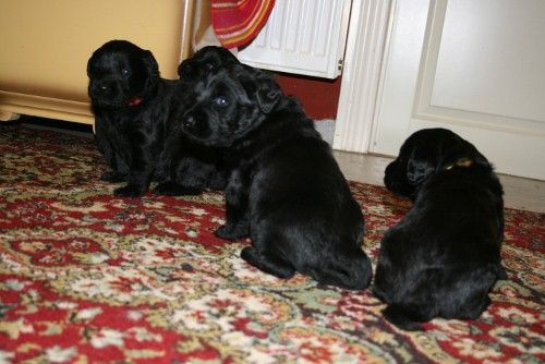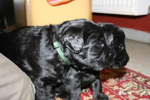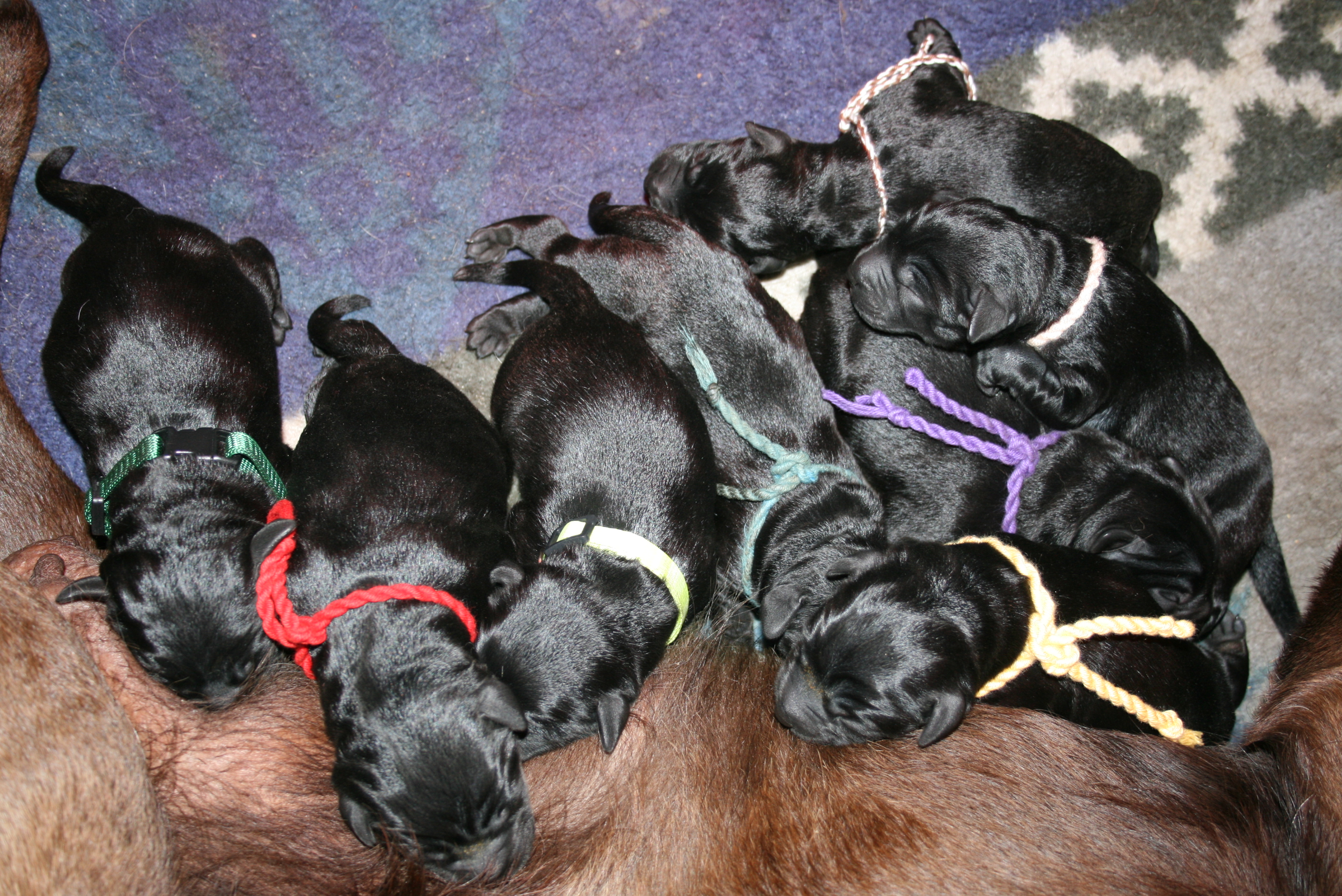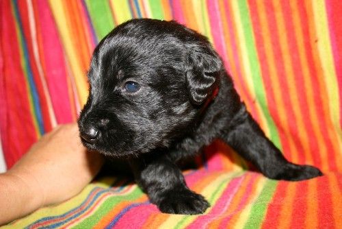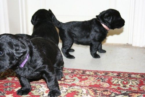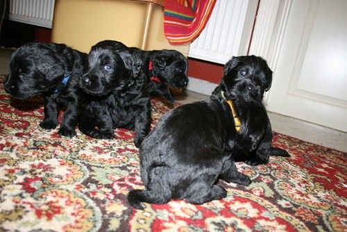 Pt er alle hvalpene kuld sorte, enkelte har lidt hvide hår under poterne, dog ikke synlige hår når hundene står op. Måske får de andre farver i pelsen med alderen, det vides ikke med sikkerhed.