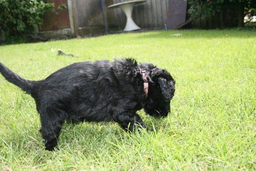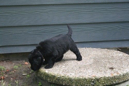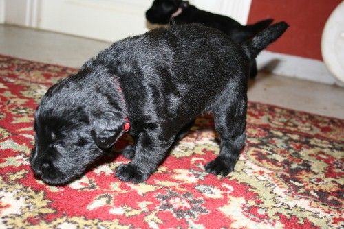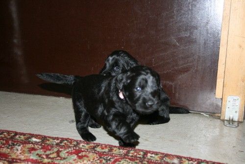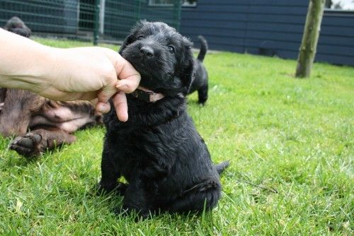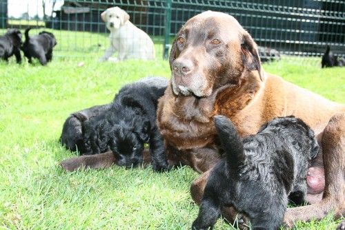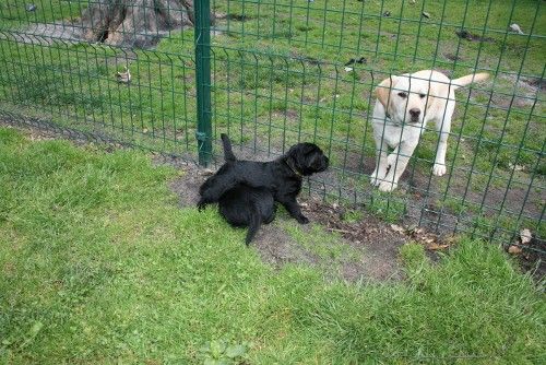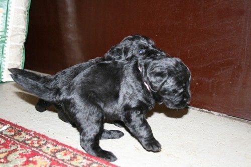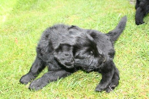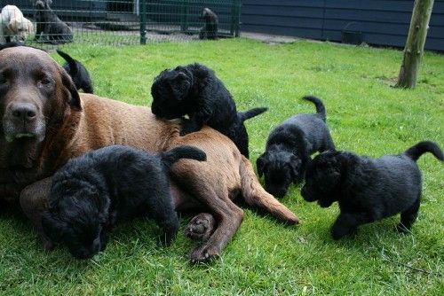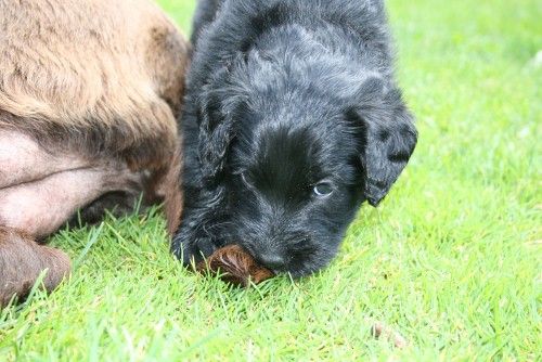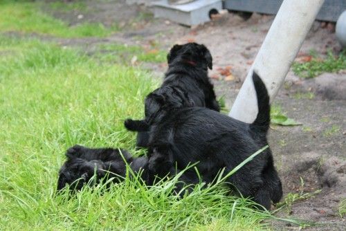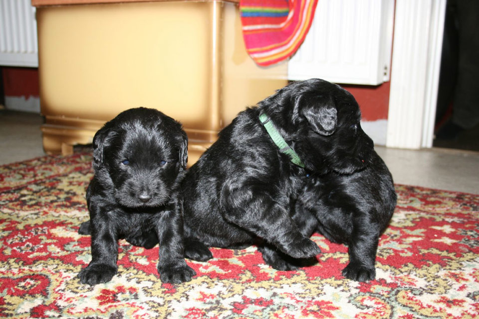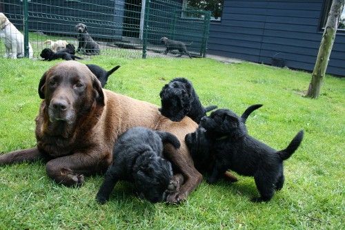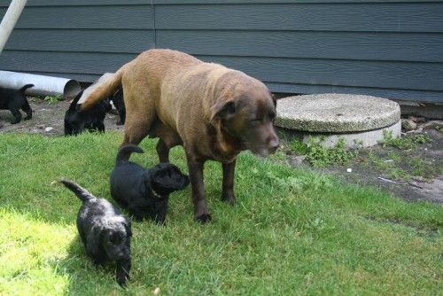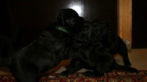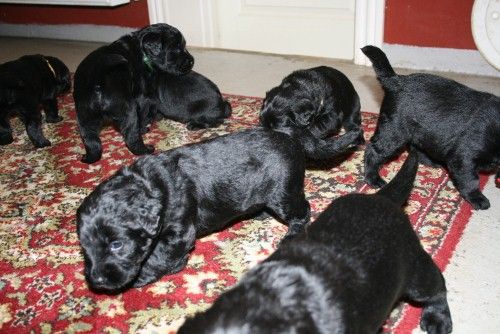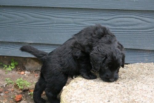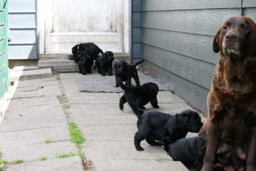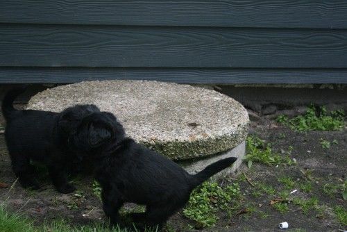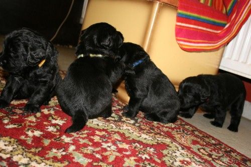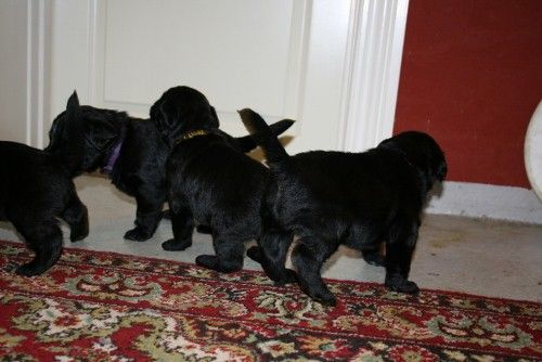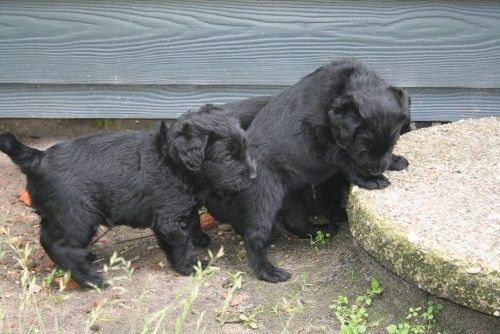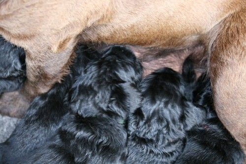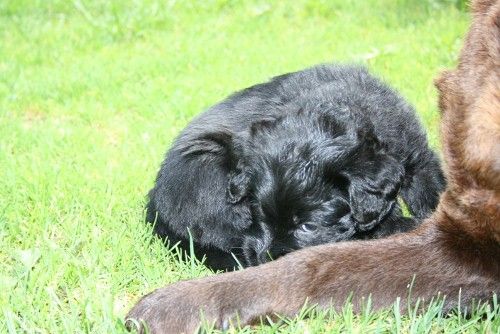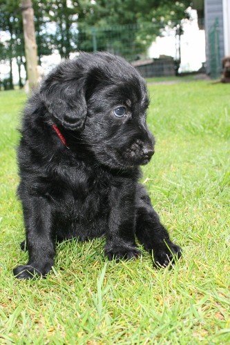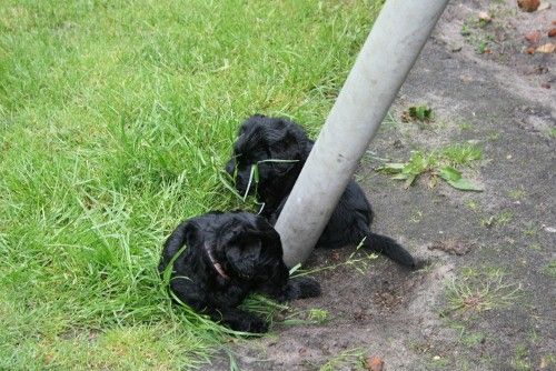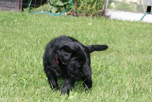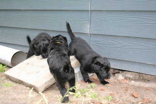 Hvalpene har det alle godt, de prøver at spise os ud af huset. De har også prøvet at få kødben, rå okseben, de suttede nu mest på det da de ikke rigtig har fået effektive tæver endnu. I dag var de så udenfor for første gang, de går endnu ikke mere end et par meter frem og tilbage, men de ser også rigtig dårligt endnu. De kunne kysse og se lidt på de store labrador hvalpe der gik bag hegnet, spænnende 😉 Se flere billeder nederst på siden…