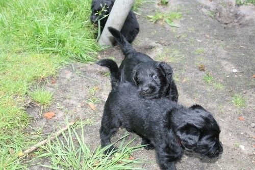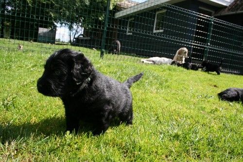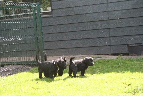 Hvalpene er nu 5 uger og de elsker at være ude at lege, de er super mobile og alt skal undersøges. De går nu længere og længere væk for at undersøge haven og dens indhold. Når de er 7-8 uger løber de trygt rundt i den store have på 1700 m2.