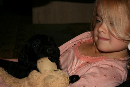 Familie Larsen var på besøg i dag, de havde deres dejlige mini/mellem Goldendoodle Mikka med, hun er datter af Sille/Persy. Mon ikke lige de sender nogle billeder af Mikka til os. Jeg fik jo taget nogle dejlige billeder af deres smukke børn og de små doodler 😉