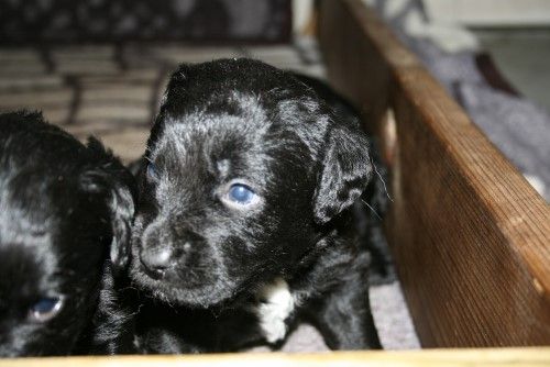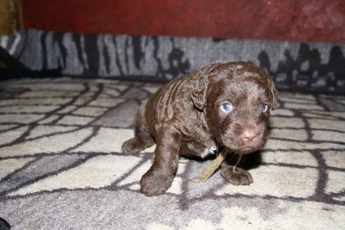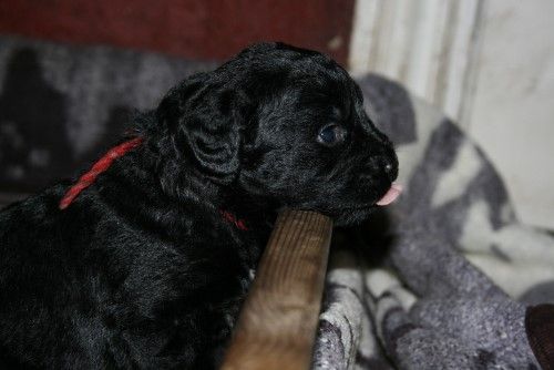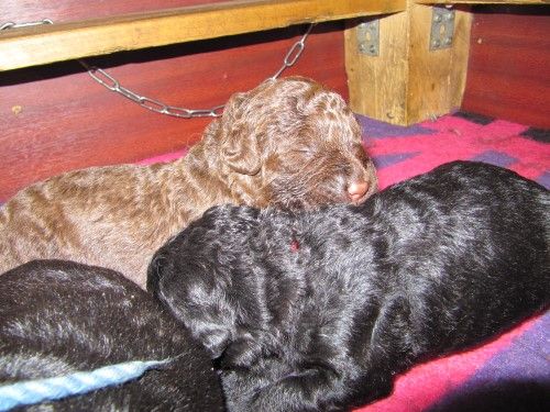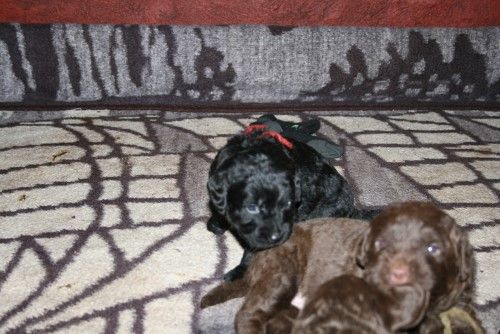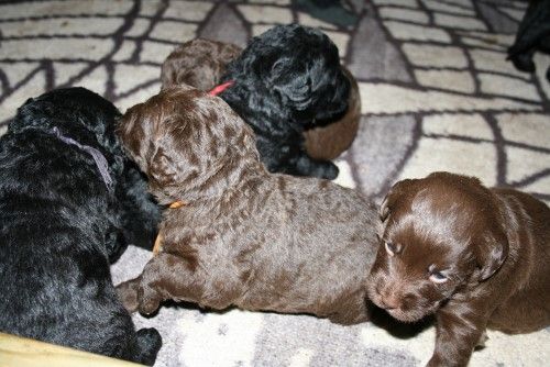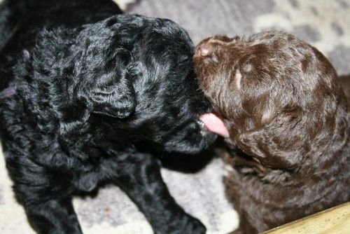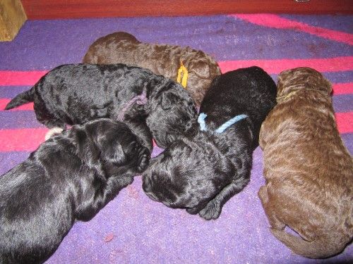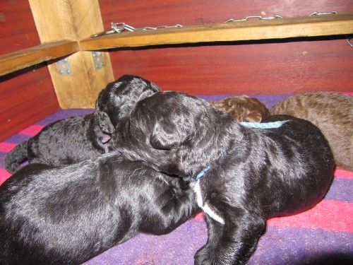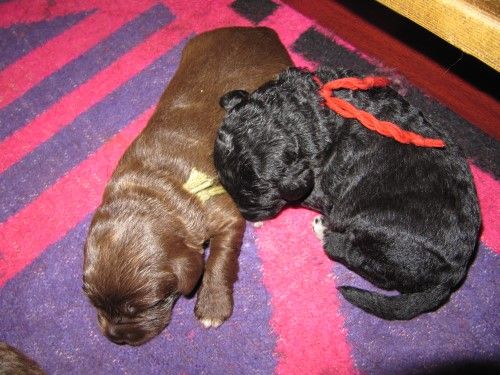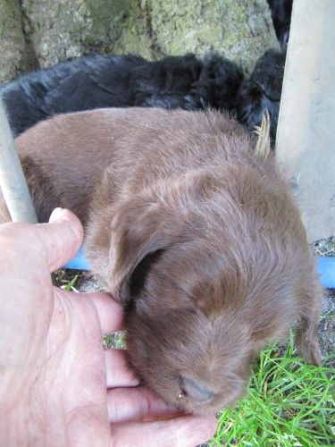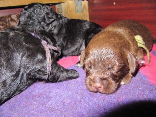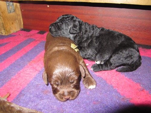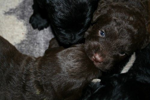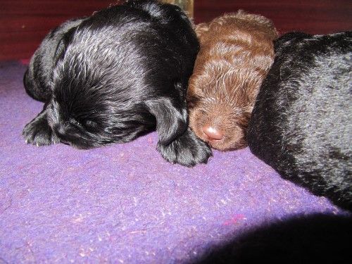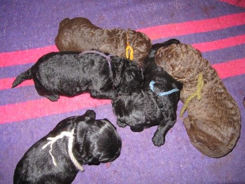 Så kommer hvalpene, nogle er unormal meget krøllet, det er dog set i tidligere kuld og andre er normale og noget med hvidt på brystet og lidt på nogle af tæerne, sødt 🙂
