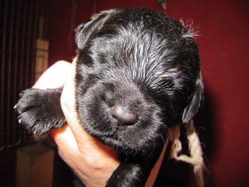 Mor Gaya klarede fødslen fint, faktisk fødte hun dem så nemt og lydløst at de første to blev født ude på gulvet uden at vi viste det og derfor døde de desværre. Gaya forstod som første gangs fødende ikke hvad hun skulle gøre med dem, 7 kom fint ud og så kom der en død micro hvalp efter mange timer og efter 15 timer uden hvalpe, med lidt medicinsk hjælp, kom der endnu en lille han og rfter mere medicin kom en stor han, 18 timer efter sidste levende hvalp. Sådan kan det gå…..Så der var altså 12 hvalpe 7 levende. (5 brune og 7 sorte)