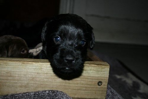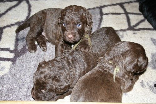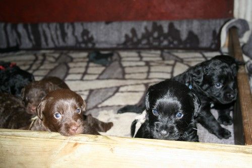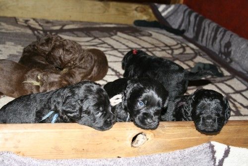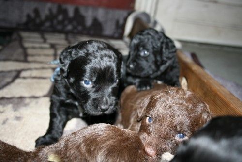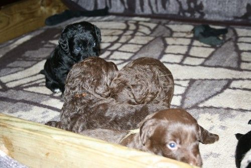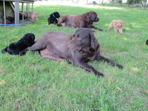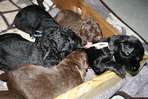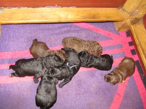 Vores brune Labrador Gaya har fået hvalpe med vores harlekin farvet Toy Pudlen Gismo. I alt 7 hvalpe.