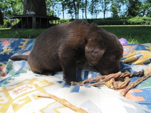 Hvalpene er 8 uger den 22.6.2013 og vi udlevere hvalpene lørdag den 22.6.2013…. Mødetid kl 11.00 + 4-5 timers undervisning, afrejse ca kl.16.00. Hvalpen er klare til at være alene fra ca om onsdagen, vi informere jer om hvordan “alene-træningen” forgår når vi underviser jer i forbindelse med afhentningen af hvalpene. Vi underviser i div. vedr hvalpen og dens opdragelse/opvækst. Vi har ikke mindre børn med ved afhentninger pga undervisningens varighed. Husk at få læst det tilsendte matriale inden afhentning (Mail). Afhentning/undervisning på andre dage koster kr. 1.500,- extra.