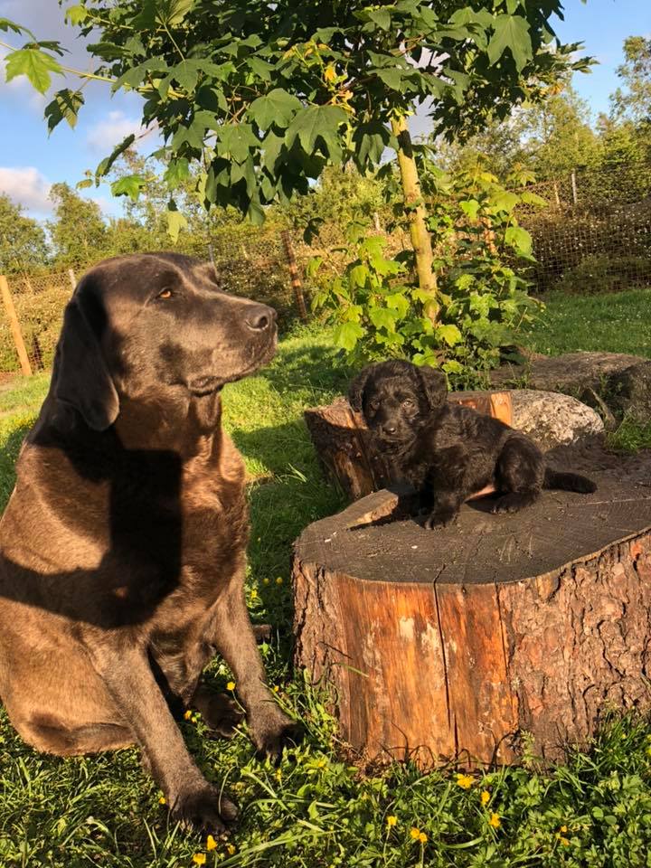 Vores Labrador Honda har fået 1 sort han hvalp med lille Toy puddel Gismo. (Hvalpe er ikke flere hvalpe til salg)