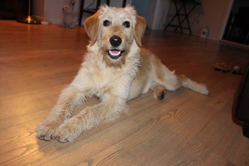 Fredag den 8. august 2014 hentede vi Villa (dengang 16 uger) hjem til vores familie. (labradoodle F1B, mor Teide, far Ozzy).