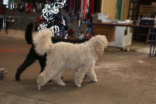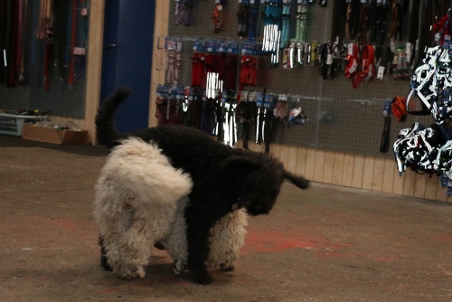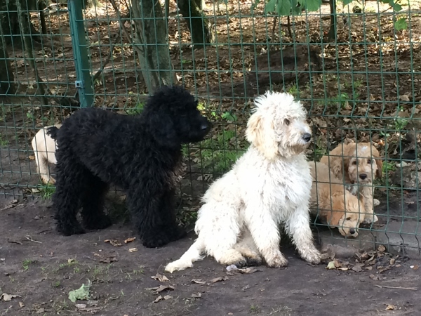 Felix (sort) er meget småkrøllet som den eneste i kuldet, han er ca 53 cm høj og vejer kun 18,5 kg, han vokser lidt endnu og kommer nok på på 55-58 cm og ca 23-24 kg.