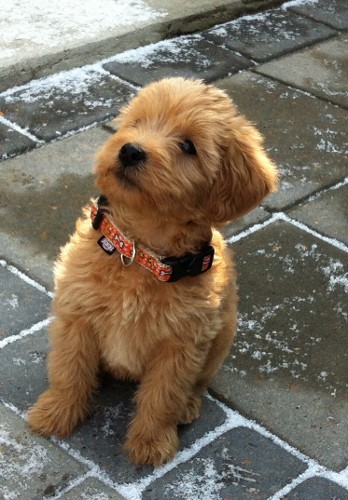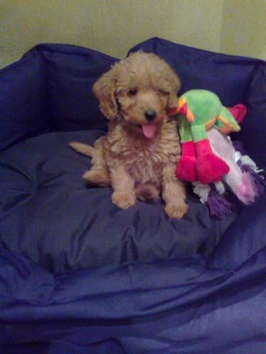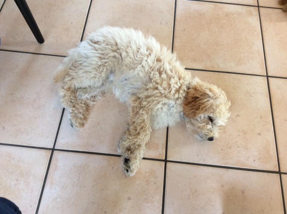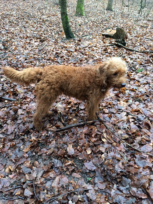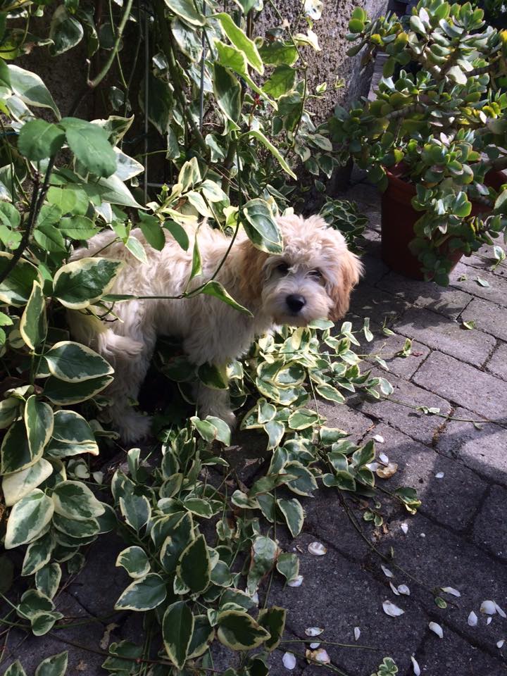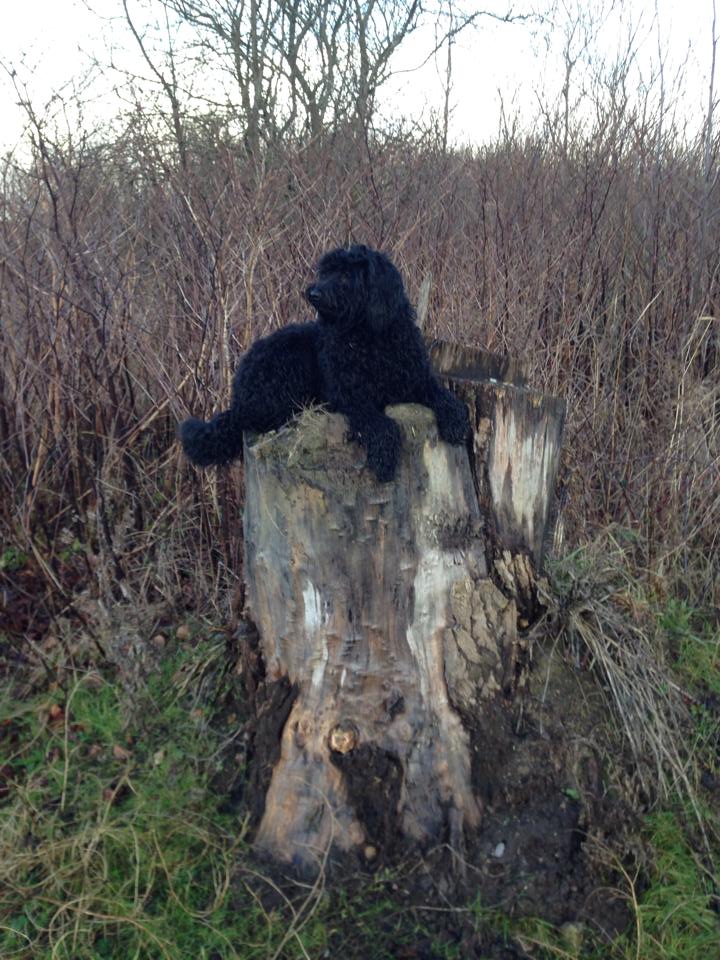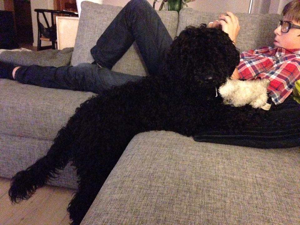 Jeg kontaktede Jeanette i sommeren 2014, vi havde fået at vide, at vores golden retriever Freja på 8 år, havde fået meget agressiv kræft i mælkekirtlerne og at hun nok ikke ville leve længe. Vi sørgede ca. 10 dage og jeg forslog så min mand, at vi skulle købe en ny hund, så hurtig som mulig, så Freja ville kunne nå at lære den nye hund alle hendes fantastiske, sjove, finurlige og dejlige tricks og væremåder, han var heldigvis med på ideen. Efter MANGE mails og samtaler med Jeanette faldt valget på Marley en F1B laberdoodle. Han var 4 måneder, da vi fik ham, han havde en skæv tand og var derfor ikke sat til salg, men den var nu ved at rette sig ud, så nu kunne han blive vores. Glæden var stor for vores familie (to store teenage drenge & en pige på 4), da vi kom hjem med vores lille “laberdoodle”. Første nat sov jeg i stuen med ham, natten gik fint og vi snork-boblede begge 2 – og hørte ikke en gang de store drenge komme hjem.
