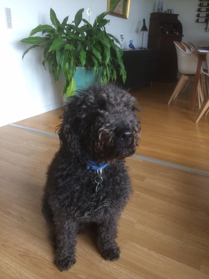 Vi har været så heldige at Jeanette valgte Sofus til os. Han er den mest tålmodige hund der findes, selv med 3 børn i huset er han rolig.(og en opdragelse af børnene om, hvordan man omgåes en hund)Hans pels minder meget om en puddel. Og den er nem at holde.