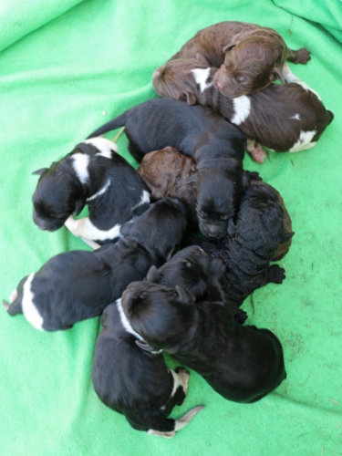 Hold da op, det var en stor flok. I alt 12 hvalpe, men desværre kun 7 overlevede de første uger. Og så 6 tæver og 1 hanner.