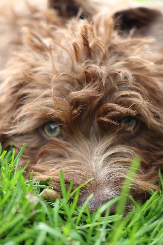 Se også hans øjenfarve, det er ved at få sin voksen farve som er noget lysere end de andre doodler.