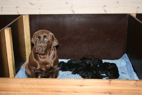 Nu kommer der hvalpe. Maya er dygtig og klare det hele selv.