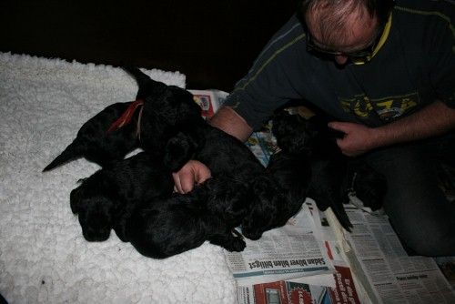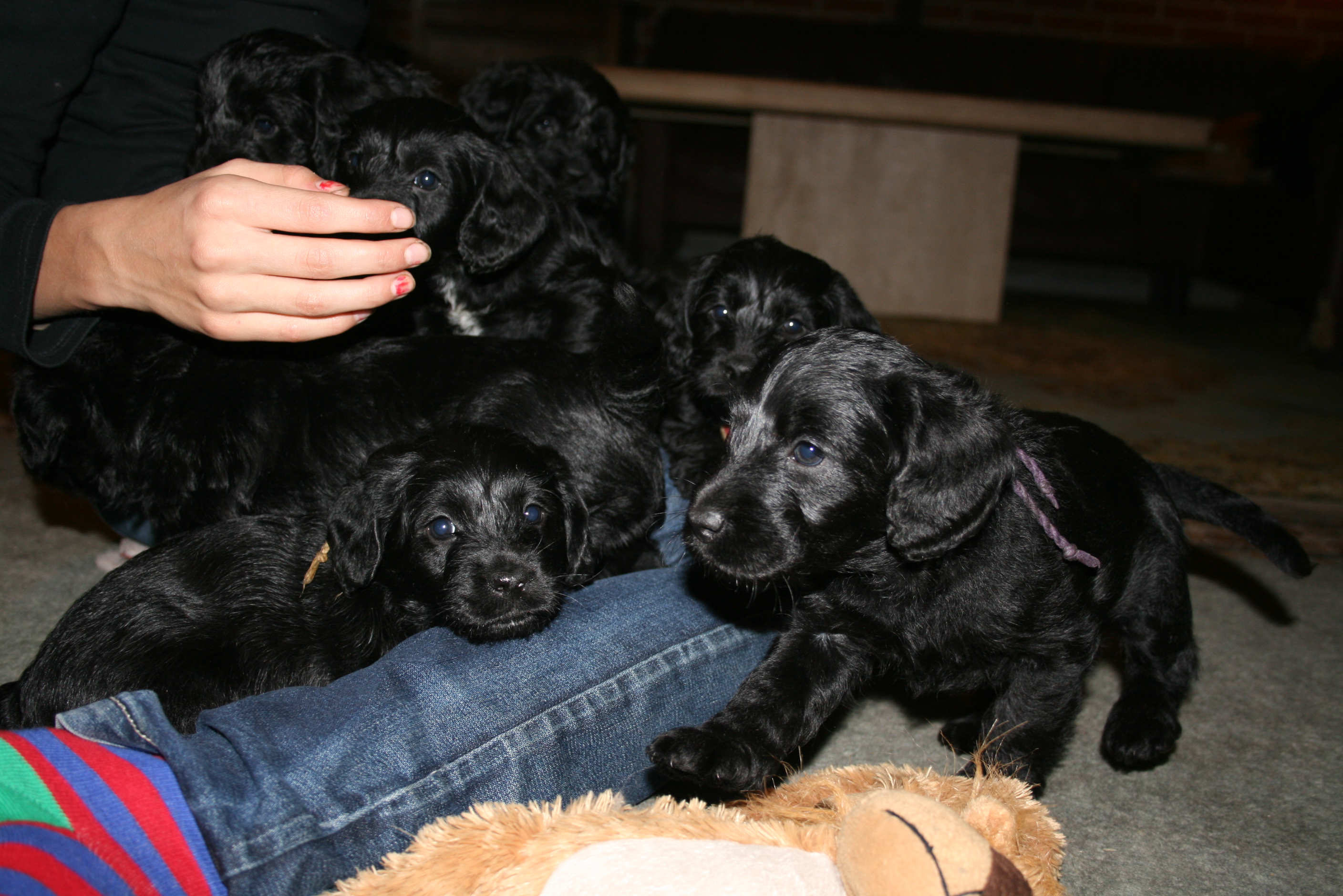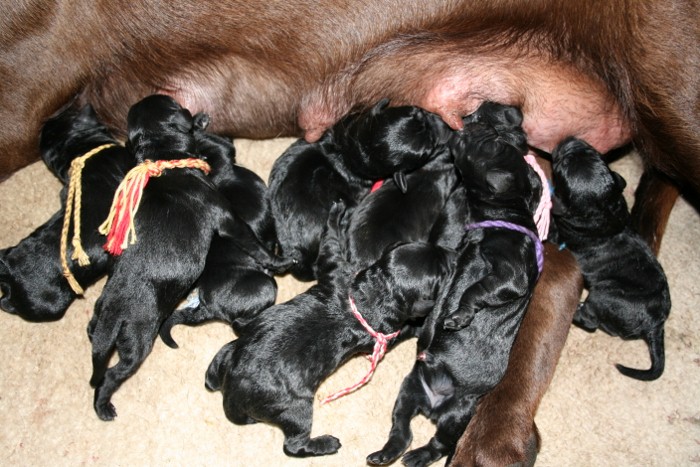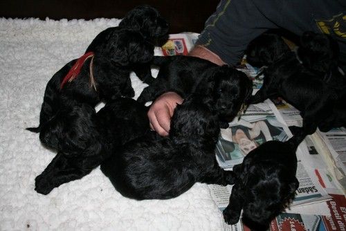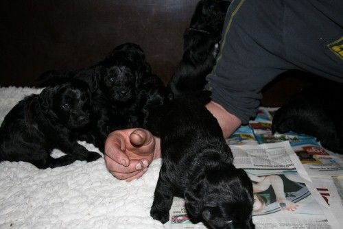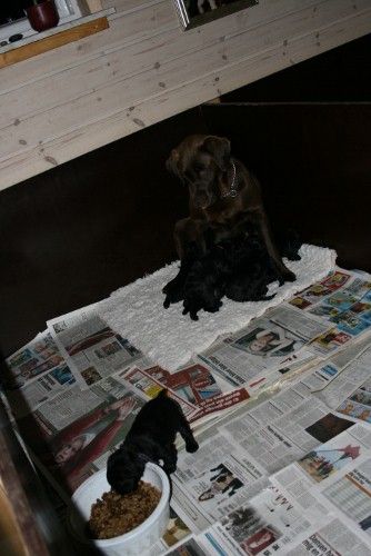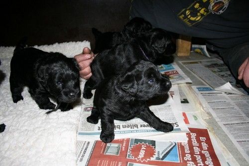 8 hvalpe, 3 hanner og 5 tæver…alle sorte. (Alle hvalpen er solgt)