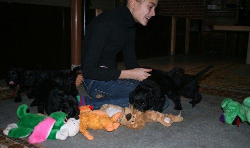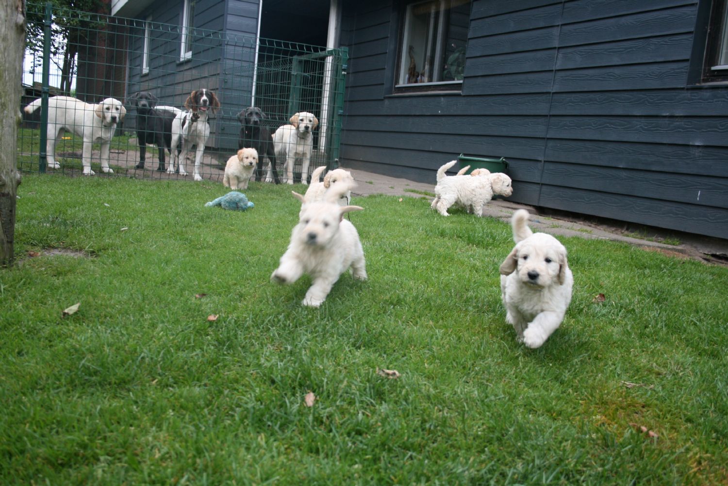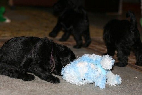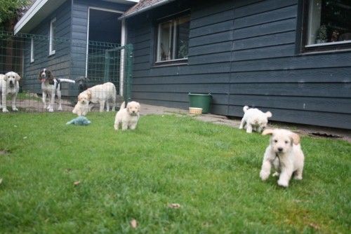 Hvalpene er nu blevet nogle noget mere beviste hvalpe, de elsker at lege med os, nu skal nye regler til at indføres, man må altså ikke bide i menneskerne, æv. De er livlige, klog og meget modige og de har enorm lyst at at løbe rundt og lege med alt og alle. De er nu blevet flyttet over i rummet ved døren til haven, så nu skal de til at med mor Maya lidt ud i haven og lege. Se flere billeder nederst på siden…