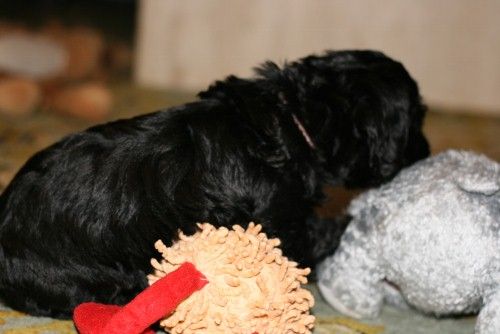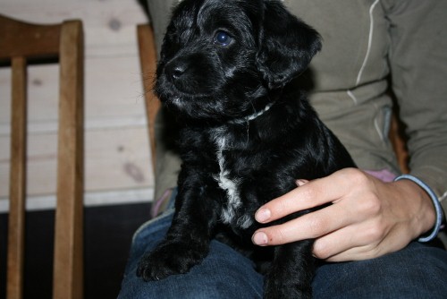 Sort han. Glad, legesyg og modig, ikke den livligste. |