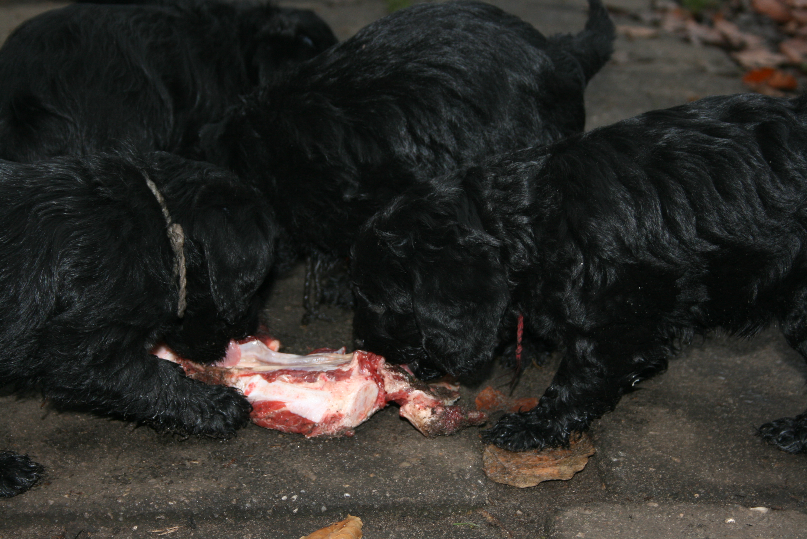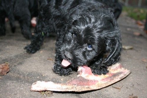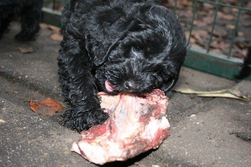 I dag stod menuen på rå okse ben, mest bruskben og kød og fedt. De formår stadig ikke at få de store mængder revet/tygget af så vi regner det stadig ikke med som et rigtigt måltid, opblødt tørkost bliver serveret senere på aftenen.