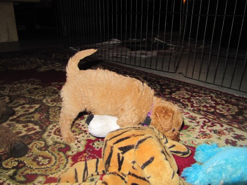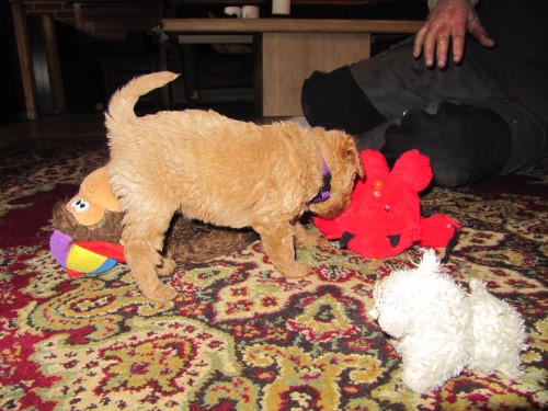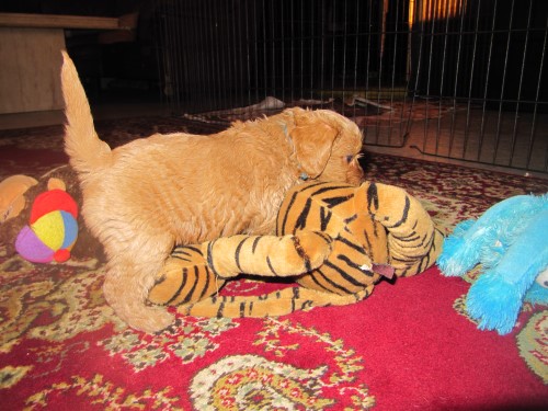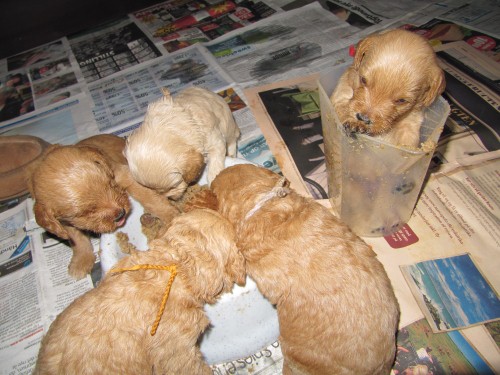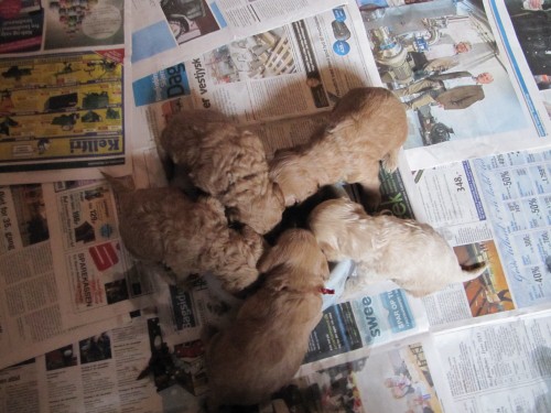 Alle hvalpene udvikler sig fint, der er kommet helt vild fart over feltet, nu har vi hunde hvalpe over alt, små frække tyveknægte som løber med alt.