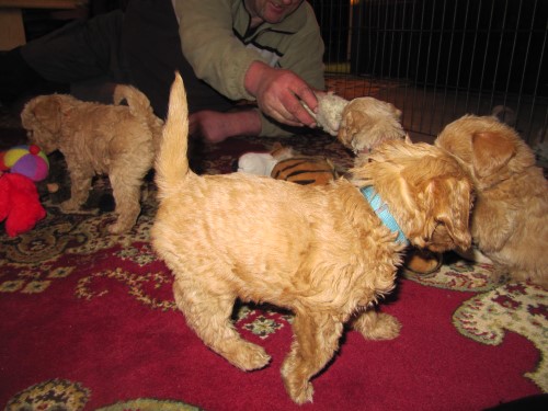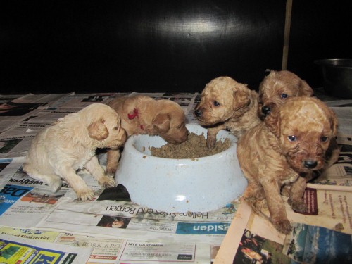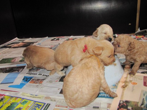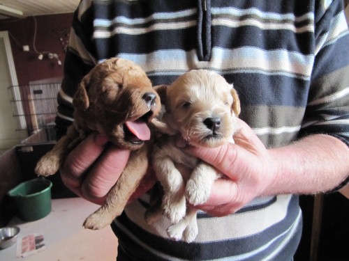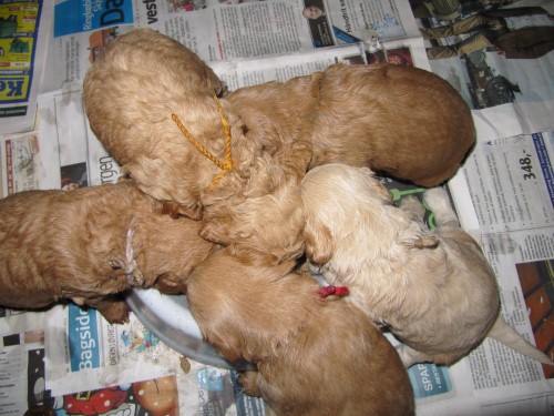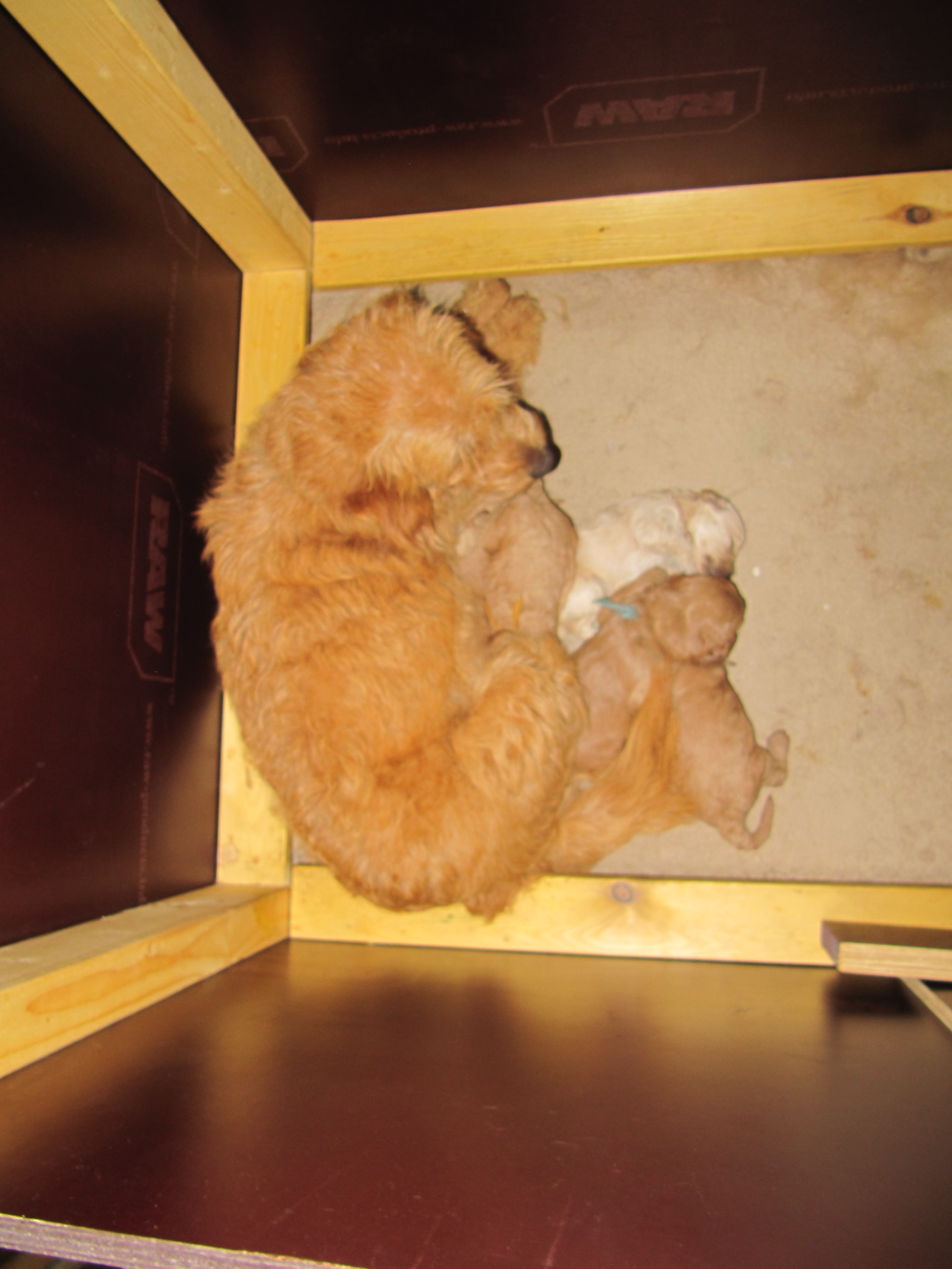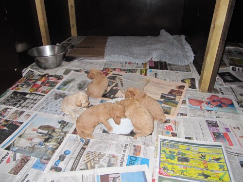 Deres F1B mini/mellem-mellem, lyse/gyldne og evt sorte Labradoodles hvalpe vil blive født ca først i februar og vil være 8 uger og flytteklare sidst i marts/først i aprill 2013.