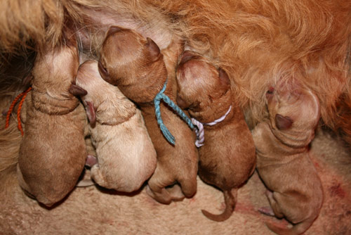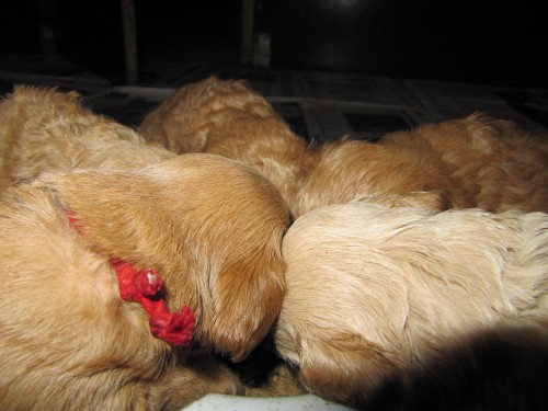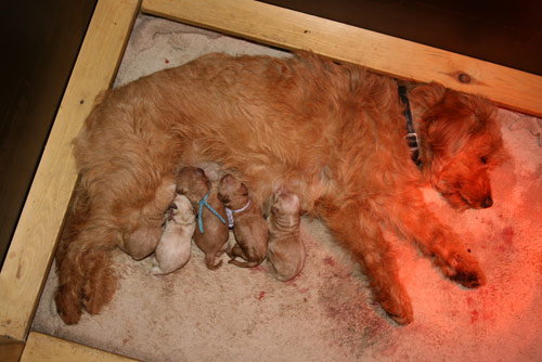 Kl. 21.55 kom den første lille tæve i en gylden farve, mor Paris er held vild med den, vi må næsten ikke få lov at se den, men hun skal nok snart forstå at vi ikke tager dem, vi kikker bare 🙂 den anden lille tæve blev født 22.10 hun er lys gylden. KL 22.40 kom endnu en gylden tæve. Kl 23.15 kom så en gylden han. Kl 23.55 kom endnu en lille mørk tæve. Så er det vist slut. Paris klarede det jo super fint. Mor og alle hvalpene har det super fint.