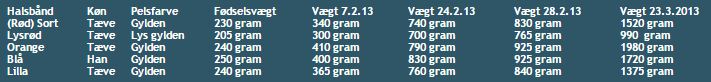 Hvalpene er 8 uger den 29.3.2013 og vi udlevere hvalpene den 29.3.2013…. Mødetid kl 11.00 + 4 timers undervisning, afrejse ca kl.15-16.00. Hvalpen er klare til at være alene fra ca om mandagen, vi informere jer om hvordan “alene-træningen” forgår når vi underviser jer i forbindelse med afhentningen af hvalpene. Vi underviser i div. vedr hvalpen og dens opdragelse/opvækst. Vi har ikke mindre børn med ved afhentninger pga undervisningens varighed. Husk at få læst det tilsendte matriale inden afhentning (Mail). Afhentning/undervisning på andre dage koster kr. 1.500,- extra.