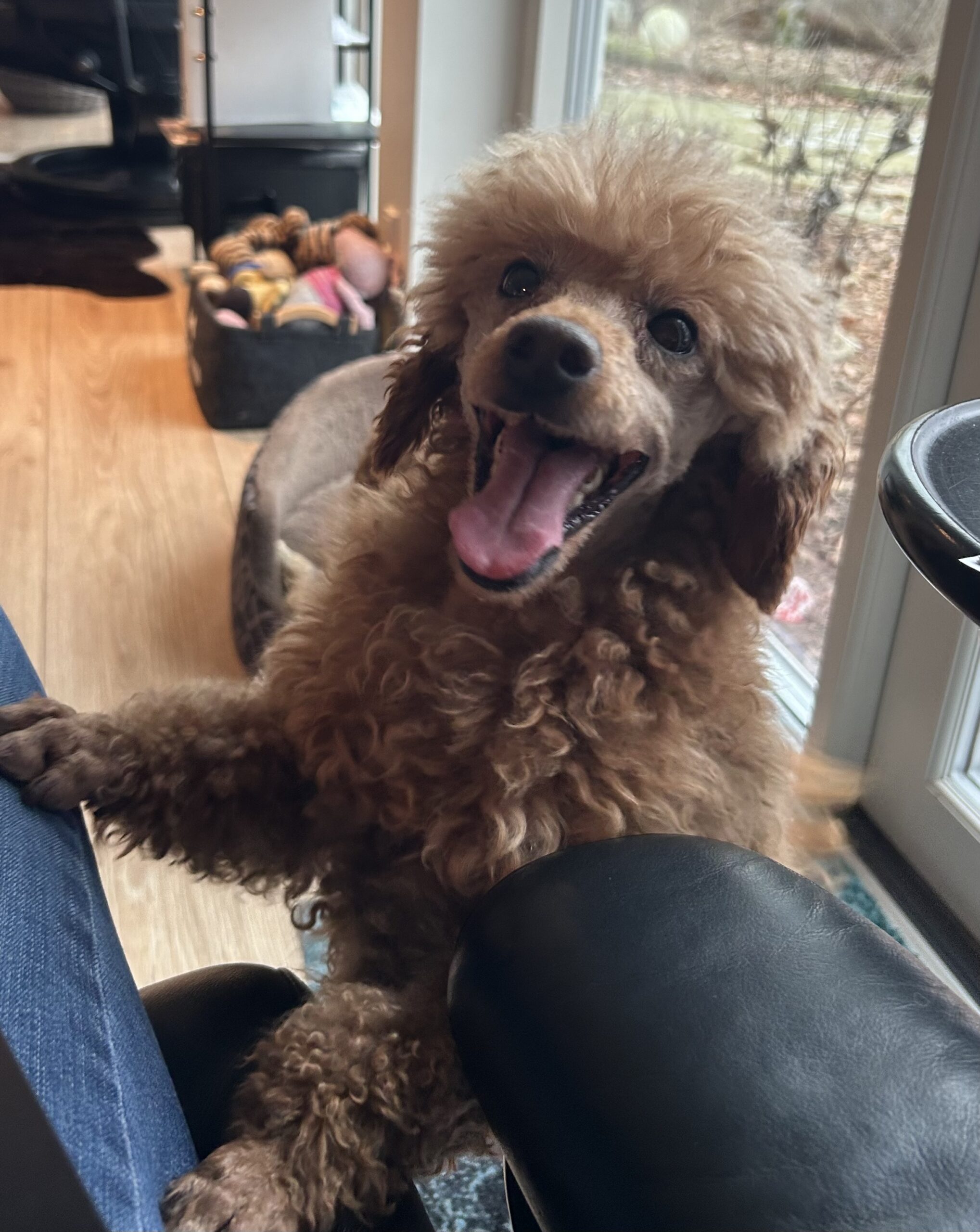 Han er en mini/mellem Goldendoodle F1, fra Jennifer og Harley 5.5.2024.